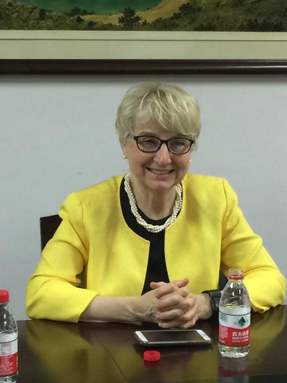 党总支书记郑彩莲女士首先致欢迎词:“尊敬的瑞德-马蒂娜丝·凯思琳女士以及各位代表团成员,欢迎你们来到魔镜号