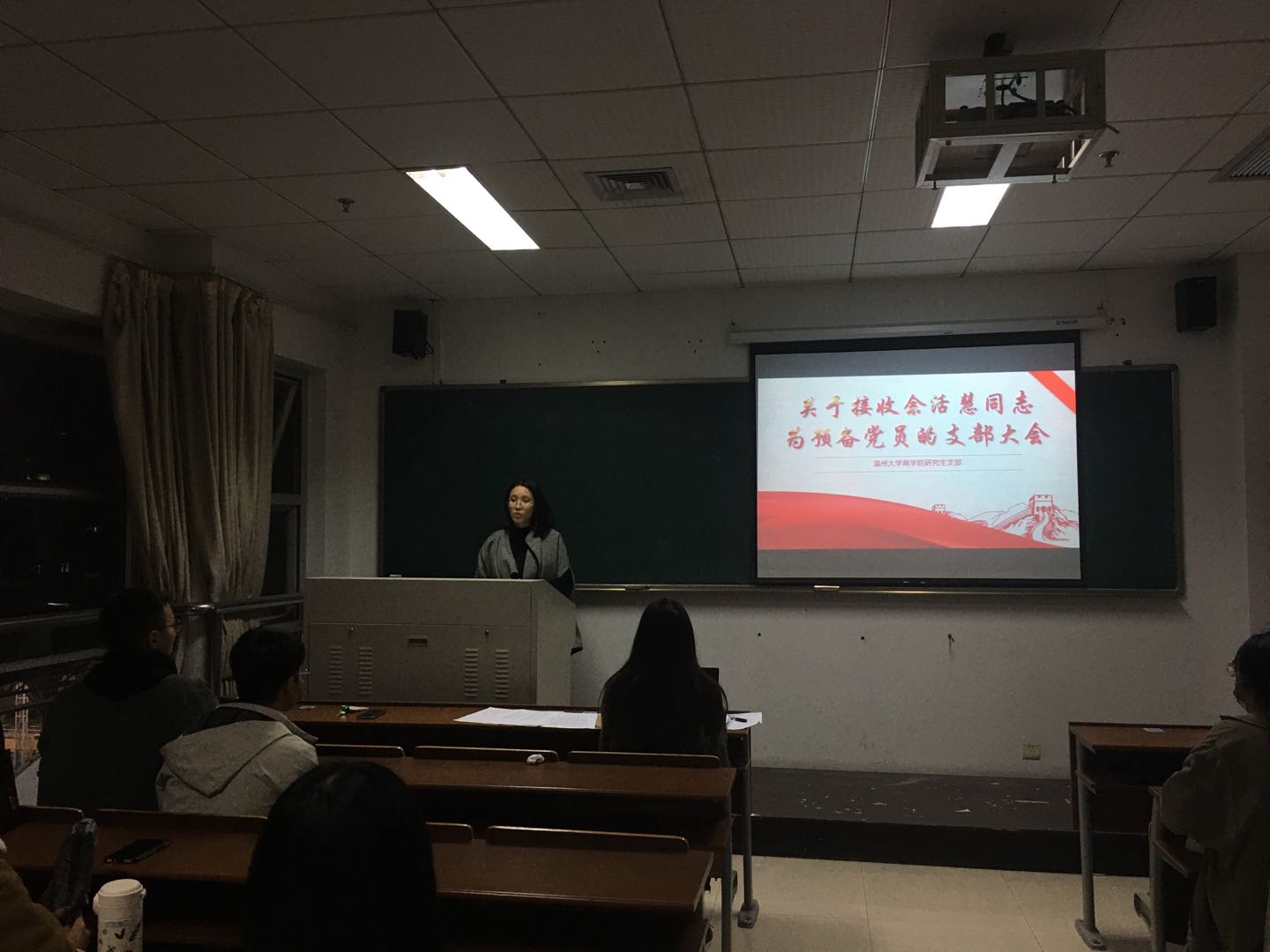 第四项议程,与会党员发表意见,对余活慧同志能否入党进行充分讨论。支部书记韩新华老师发表意见,指出余活慧同志在对支部汇报时应适当增加自身近期状况。余活慧同志虚心接收意见,并表示将会在今后的汇报工作中进行改进。与会其他党员同志积极发表意见建议,讨论氛围热烈。谢娇同志、张润强同志分别作为余活慧同志的班长和室友对其能否入党发表意见,表示同意其入党。