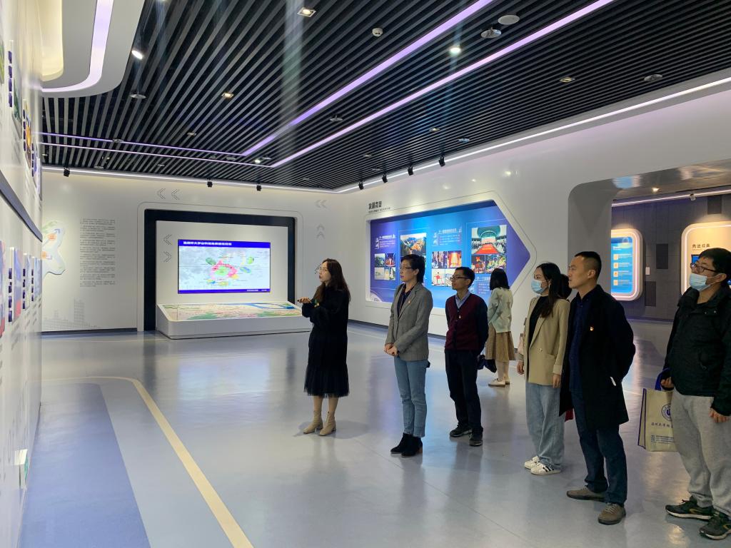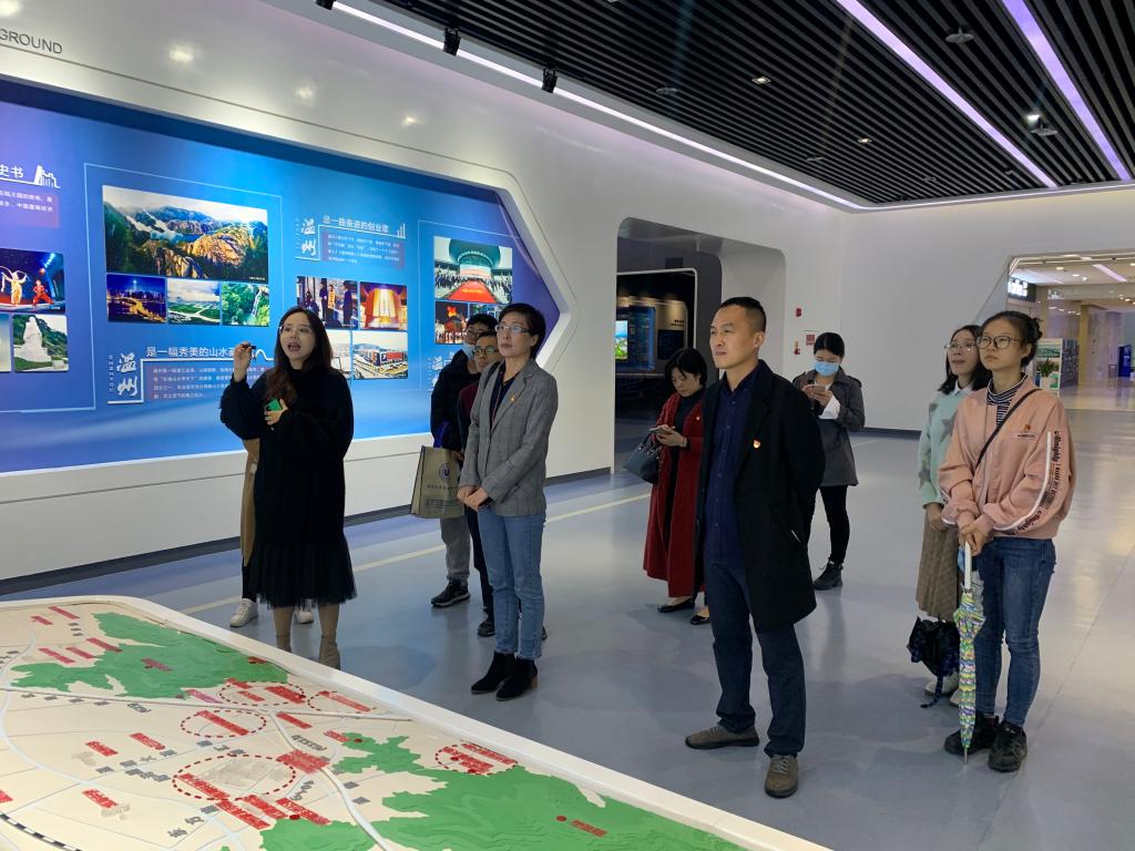 温州国家大学科技园讲解员详细介绍了园区的整体规划与空间布局,并对 “1+N+X” 设计理念进行了鞭辟入里地讲解:园区以孵化创新企业、转化科技成果、培养创新人才、聚焦创新资源为功能定位,重点培育数字经济、智能装备、新材料、生命健康四大产业,为入驻创业者和初创期科技企业孵化提供场所、服务和政策扶持的科创服务平台。党员同志们经历了一场“创新之旅”,LED屏幕上抢眼的数字展示着最新的创新成果,展厅里一项项陈列品展现出先进的科研技术。各位党员鸟瞰了整个园区,对园区的高质量发展和整体环境赞不绝口,一致认为这里是创业者和就业者的天堂,是彰显温州地方经济特色的重要窗口。