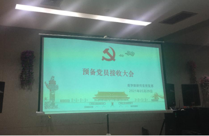 研究生党支部召开预备党员接收大会。本次会议共12名发展对象参与大会,30名党员参加本次大会,其中正式党员24名,预备党员6名。会议由支部组织委员陈丹女同志主持。