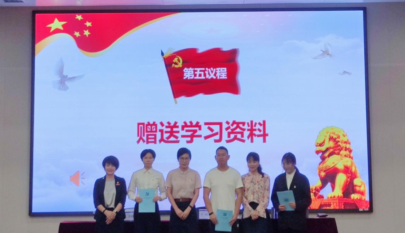 郑彩莲老师、叶柏霜老师与王晓华老师向学员代表赠送学习资料,并合影留念。全体与会人员还共同观看学习了“党史教育小视频”。视频以致敬民族英雄为主题,展现了以刘志丹同志为榜样的先进共产党人不屈不饶的品质,勉励学员们不忘初心、牢记使命,自觉践行党员精神。