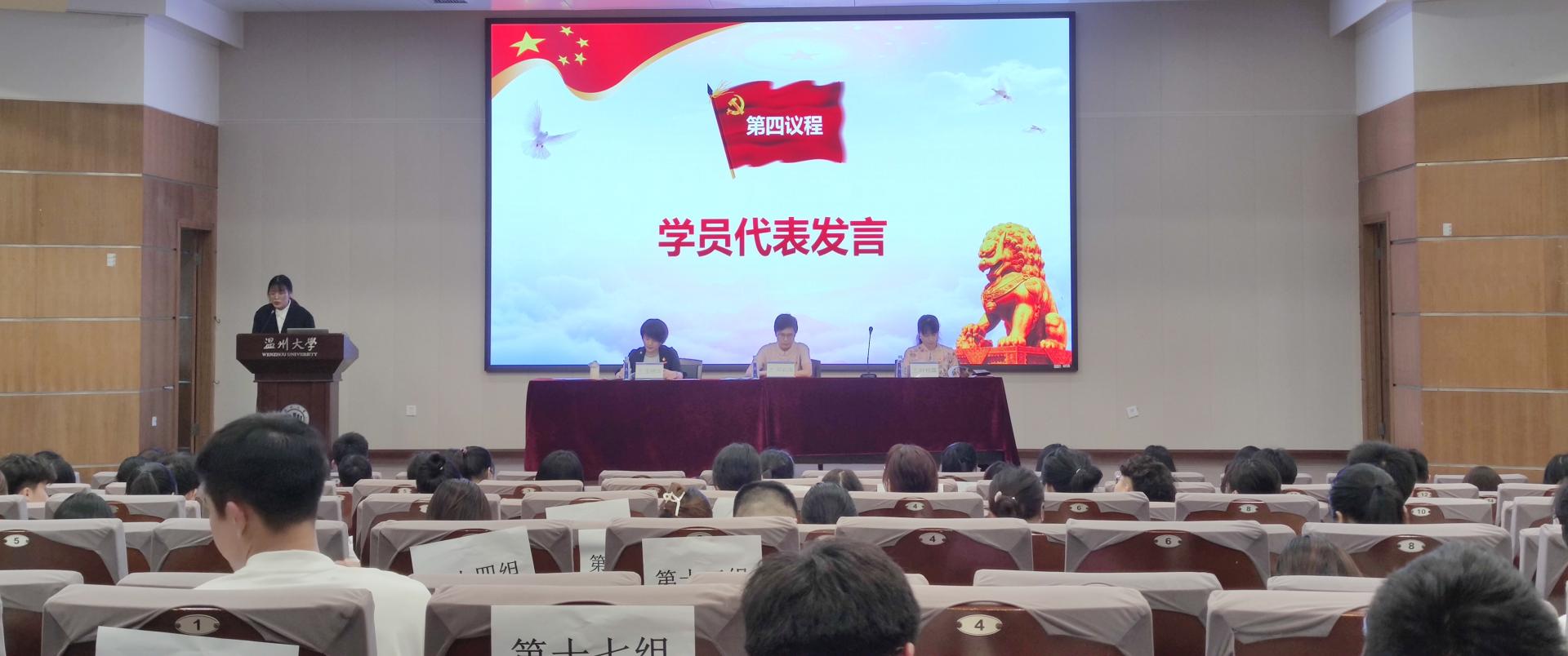 典礼在庄严的国歌声中开始。首先由马克思主义学院党委副书记叶柏霜老师致辞,她强调:“抓好青少年学习教育,让红色基因、革命薪火代代相传,党的历史是最生动、最具有说服力的教科书,也是最好的营养剂”,青年应当学好党史,践行初心使命,严格要求,落实行动,展现新党员的风貌。随后,培训班班主任靳颖老师宣读学员守则,并向全体学员强调本次培训班的规则与纪律,规范学员行为。马克思主义学院的张子怡同学作为学员代表上台发言,她分享了自己在入党过程中的思想变化,并时刻提醒自己要以党员标准严格要求自己,向着成为一名优秀的共产党员的目标不断迈进。