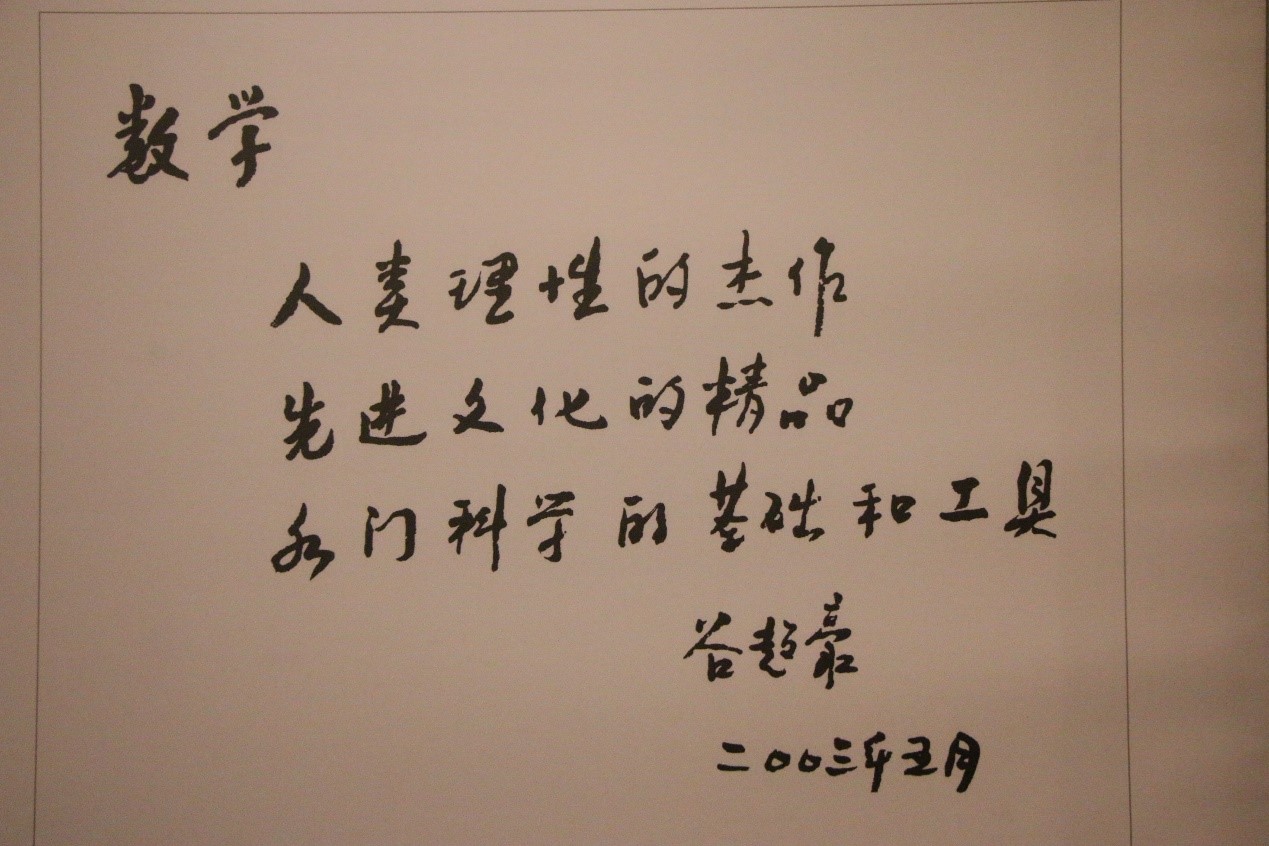 阴雨绵绵,同志们来到位于南塘河畔的温州数学名人馆——著名数学家谷超豪的祖居。走进幽深僻静的谷宅,映入眼帘的便是温籍数学名人塑像,姜立夫、苏步青、谷超豪,在布局紧凑的庭院里,三尊青铜塑像让三代温籍数学家中的佼佼者穿梭时空相聚;或举杯品茗,或握卷阐述,或颔首思索,栩栩如生的塑像,恍惚间也将大家引入数学世界的堂奥。两侧的厢房展示了温籍数学家,对温州各个时期较具代表性的29位数学家作了介绍,其中既有蜚声海内外的老前辈苏步青、谷超豪、姜立夫等,也有正值事业顶峰的中年数学家陈大岳、罗锋、蔡申瓯等。展厅可以看到数学大师们曾经用过的三角尺、量角器、尺子、笔等数学用具,辅之通过石雕,照片、塑像、发绣、视频等手段,展示了各位数学家的科学成就、论述著作和从事的工作情况,也印证了温州在培养数学人才方面的辉煌。