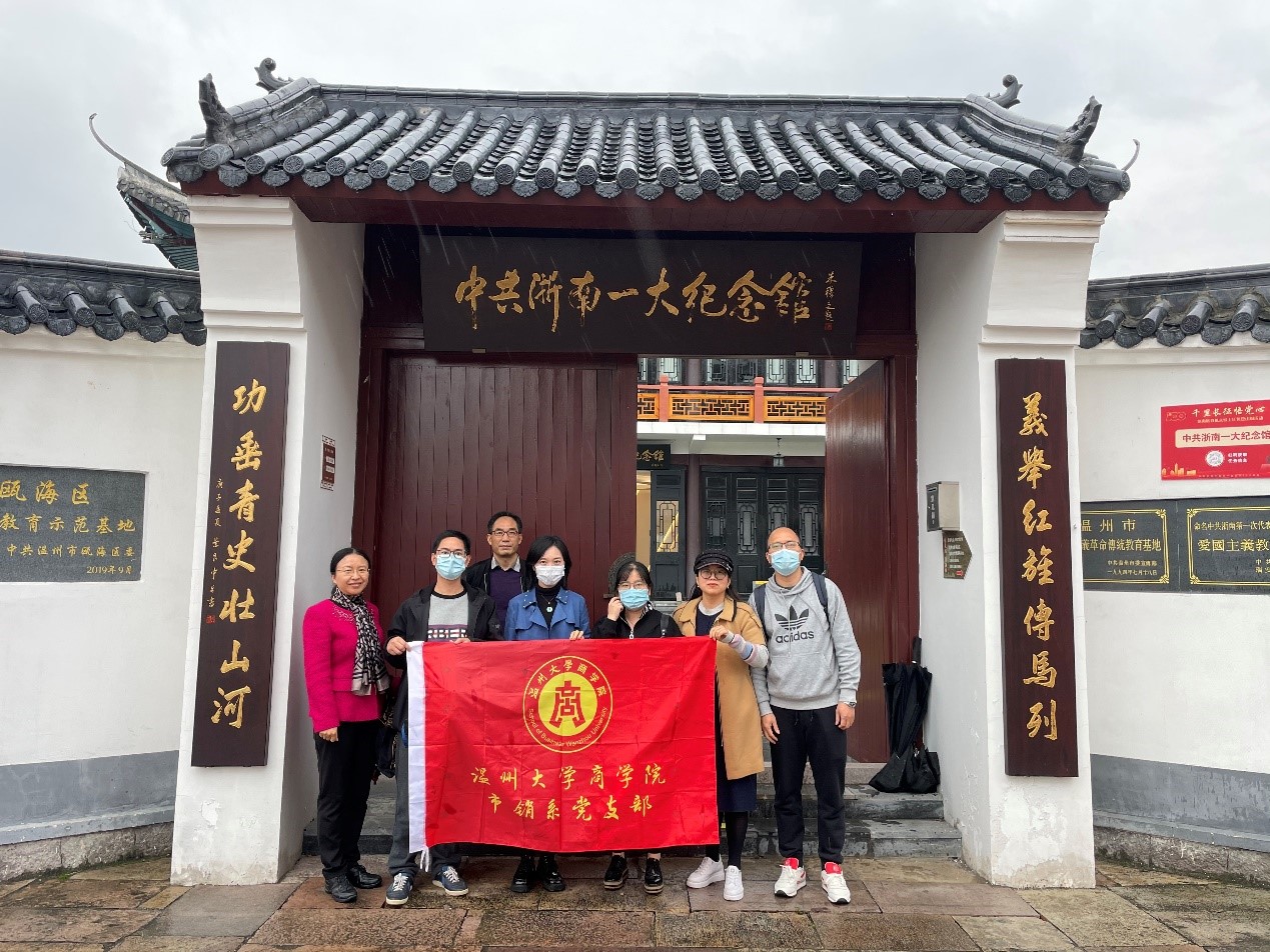 教工第三党支部全体成员一起赴瑞安玉海楼和瓯海渔谭浙南一大会址参观学习并开展党史教育活动,活动还邀请了工商系部分党外代表。支部全体成员在龚军姣书记的带领下,参观了浙江四大藏书楼之一的玉海楼。玉海楼是一座具有特殊意义的私家藏书楼,包含了孙诒让故居和百晋陶斋,1997年被命名为浙江省爱国主义教育基地。以孙衣言、孙锵鸣、孙诒让为代表的文化精英在当时积极投身兴儒救国,在寻求富国强民道路的实践过程中,将永嘉学派的经世之学传承发展,以达到“振世救敝”和“富强之原,在于兴学”的改良目的。之后,大家赴瓯海渔谭浙南一大会址参观学习,追寻那段红色记忆,重温那些红色往事,缅怀革命先烈的丰功伟绩。浙南一大在渔潭召开,这是浙南党史中的一件大事,在浙南党史中占有重要地位。浙南特委成立后在党中央直接领导下,重点领导武装斗争,积极进行建党和发动群众工作,开展土地革命,筹建红色政权,在浙南人民心中播下了革命火种,为后来浙南游击根据地的建立奠定了基础。