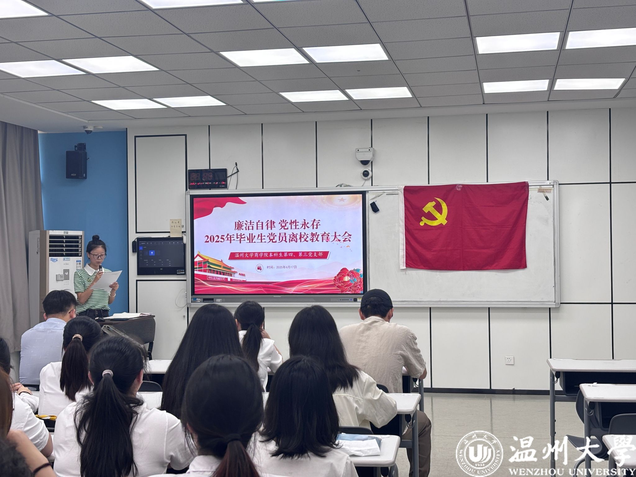 本科生第三、第四党支部在北2-107隆重召开支部2025届毕业生党员离校教育大会,为即将毕业的党员同志们上好离校前的关键一课,进一步强化党性教育,明确组织关系转接等重要事项。学院党委负责人、本科生第三、四党支部书记出席会议,会议由本科生第四党支部书记聂海燕主持。