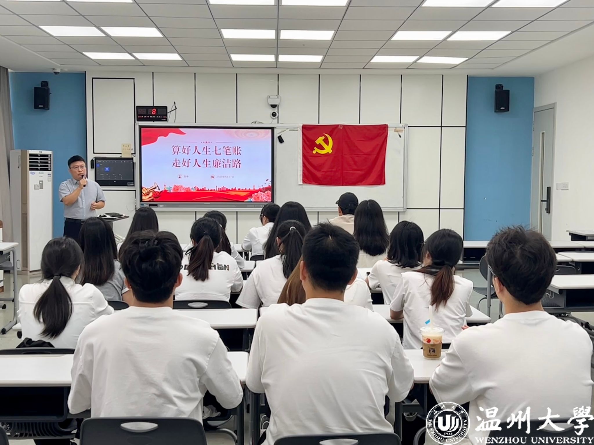 学院党委书记唐华为支部毕业生党员讲授了专题党课《算好人生七笔账 走好人生廉洁路》。他深入浅出地阐述了人生七笔账的重要意义,从政治账、经济账、名誉账、家庭账、亲情账、自由账到健康账,提醒大家时刻保持清醒的头脑,算好每笔账,坚守廉洁底线。他强调,作为新时代的共产党员,要按照 “忠诚干净,担当尽责”的要求,树立正确的世界观、人生观、价值观,从意识深处形成正确的权力观、政绩观、事业观,筑牢预防腐败的思想防线,做到心有所畏、言有所戒、行有所止,在未来的人生道路上走得更加稳健、更加坦荡。