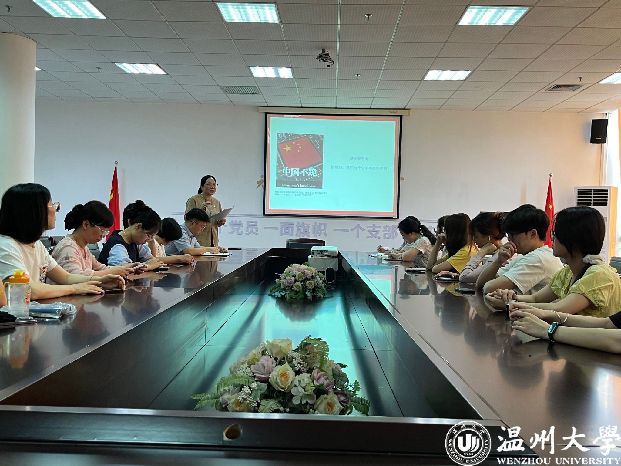 在学校“党员之家”会议室,曾蓓蕾以近期中美贸易战,外交部发布“不跪”宣传视频为引,回顾了党的百年发展历程,继而提出党员廉洁作风的重要性,强调廉洁作风是党员的立身之本,也是学院事业高质量发展的重要保障。
