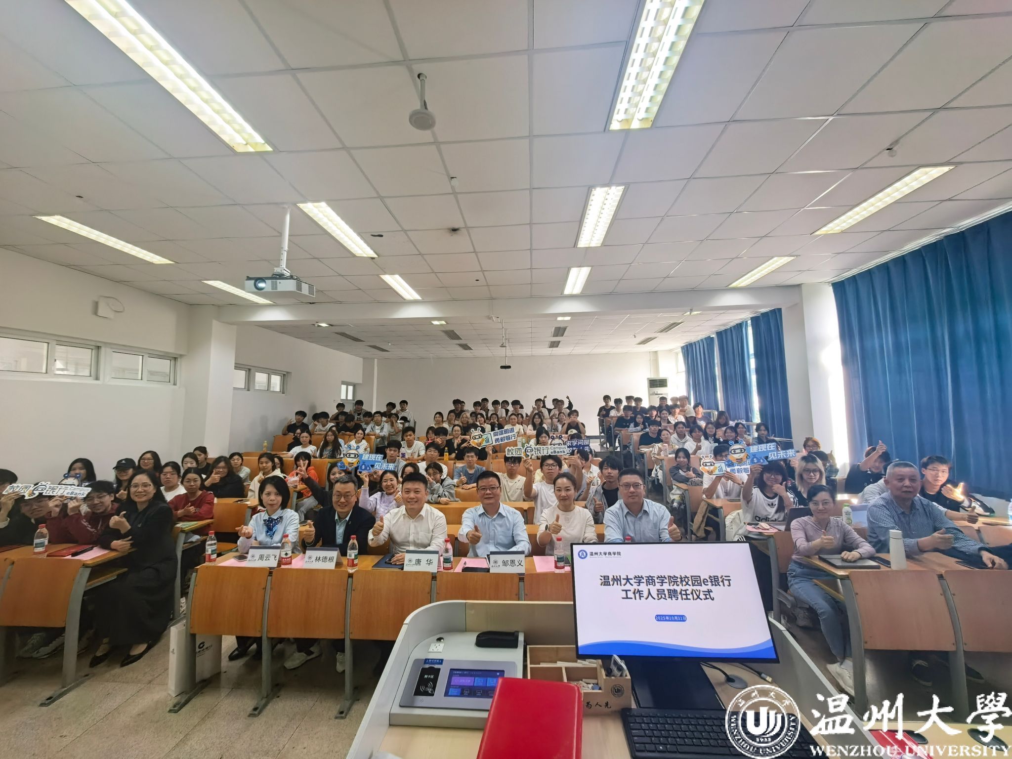 校园e银行工作人员聘任仪式在北2-411教室举行。本次仪式别开生面地融入2025级金融工程专业导论课堂,全体新生现场观摩。中国建设银行温州市分行网络金融部总经理邹恩义、魔镜号