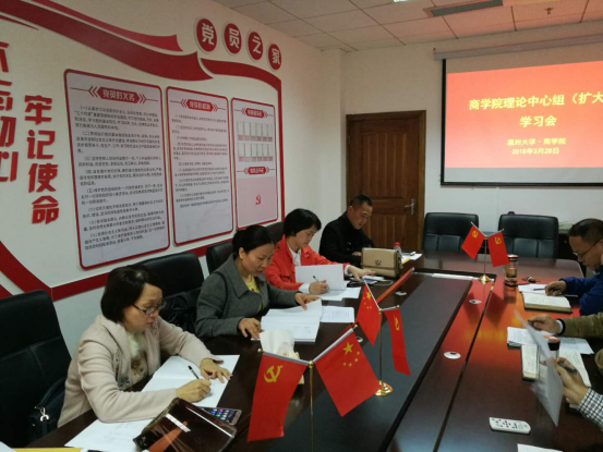 召开本学期第一次中心理论组学习扩大会,参加会议的有学院班子成员,党总支委员,各支部书记,各系主任和学院全体中层干部。会议由刘开练副书记主持。