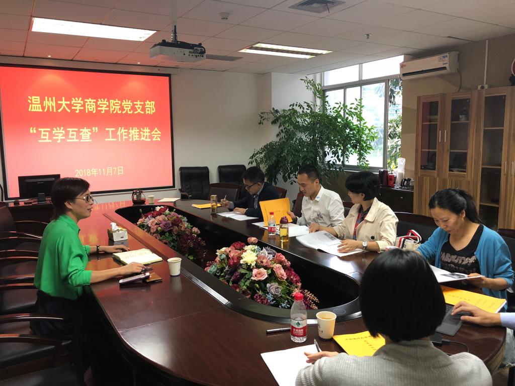 A222会议室举行党支部“互学互查”活动。党总支书记郑彩莲、院长胡振华、副书记刘开练、副院长林俐、罗建利及各支部书记出席活动。
