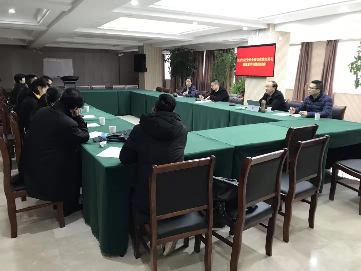 教工第一支部周建华和何宾老师参加由工商联组织的行业协会商会优化布局和增强主题功能座谈会,参加对象为温州鞋革协会、温州服装商会为代表的支柱产业和电子商务、网络经济等新兴产业以及在党建、人才培训有亮点和特色的物流协会、金属材料协会等,共有二十多家行业协会商会的秘书长参加,会议由工商联会员处周志斌处长主持。