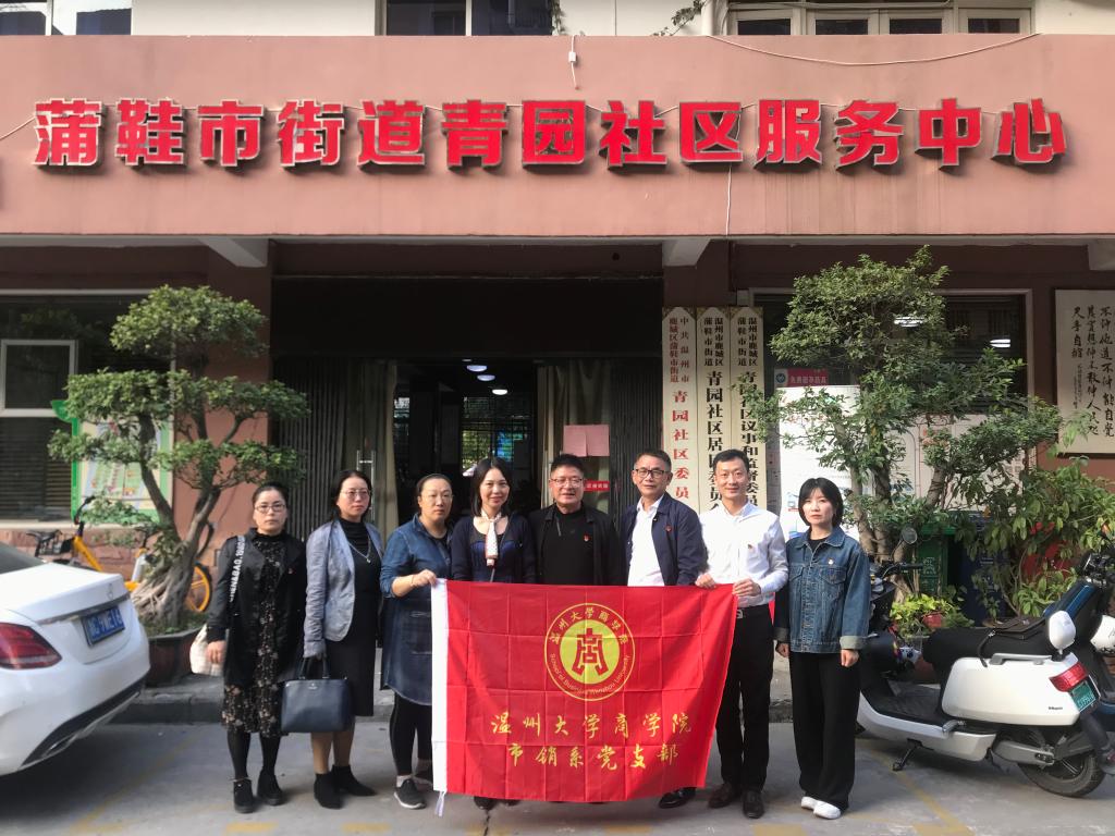2019年11月6日下午,根据“不忘初心、牢记使命”主题教育活动安排,教工第三党支部(市场营销支部)走进蒲鞋市街道青园社区,并启动了与青园社区党支部的结对共建活动。该社区曾获省级无邪教社区、四星级文明社区、学习型党组织创建示范点等荣誉。
