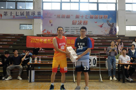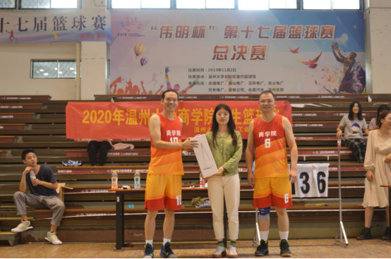 全场比赛结束后由副院长余向前老师、工会主席周建华老师、金融硕士负责人吉云老师分别为获奖队员颁发奖品。在集体合影中,本次篮球赛成功谢幕。