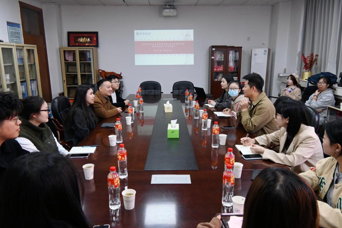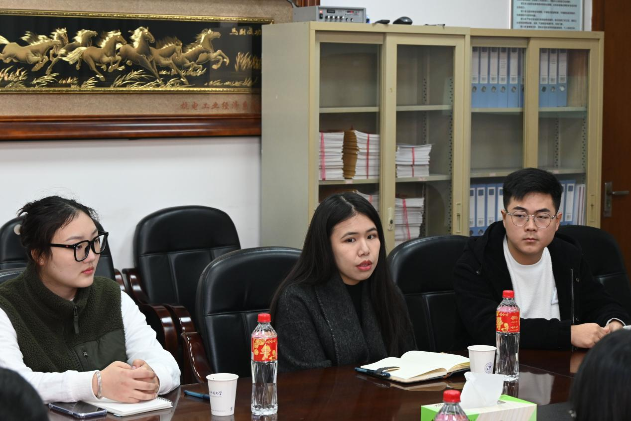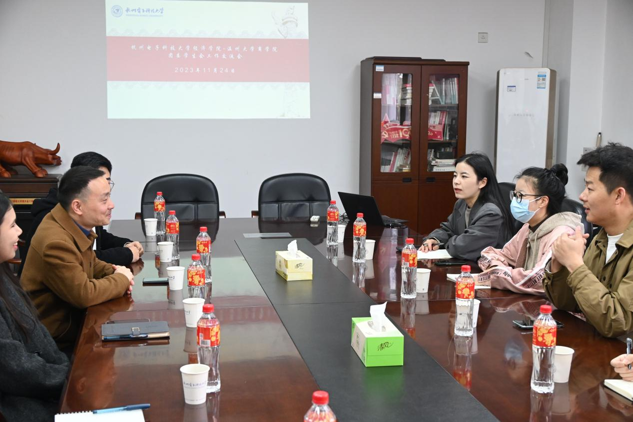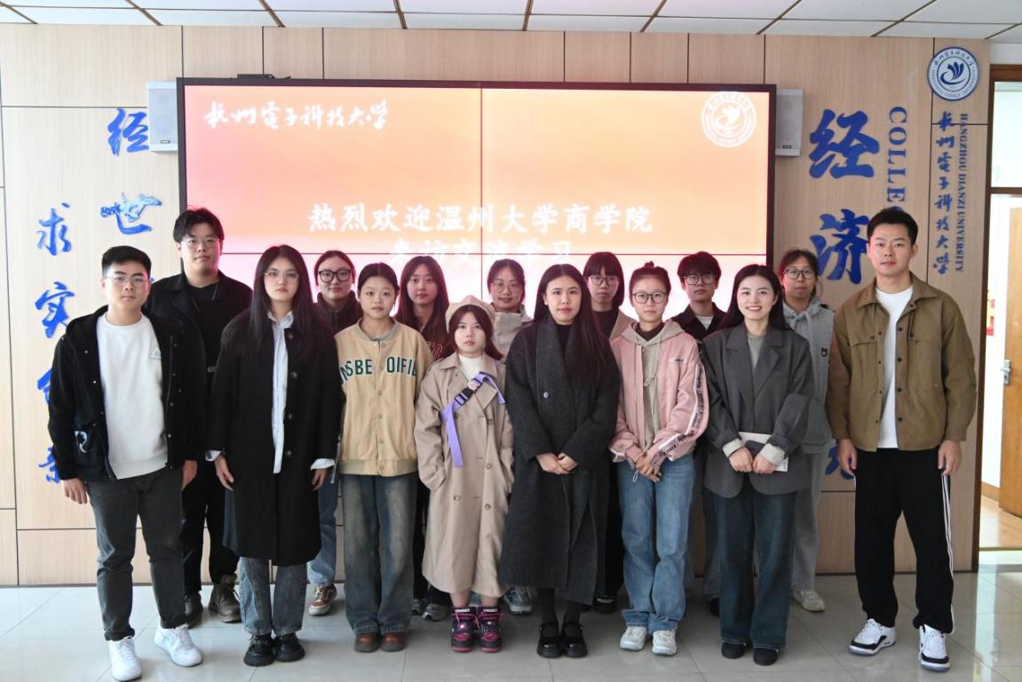 研会指导老师王景欣、学生科辅导员聂海燕和团学指导老师张春洋带领研会主席团、党服主任和团学主席团到杭州电子科技大学经济学院学习交流。杭州电子科技大学经济学院党委副书记连升炯、经济学院团委书记蒋梦丹以及研会主席和团学主席参加本次活动。