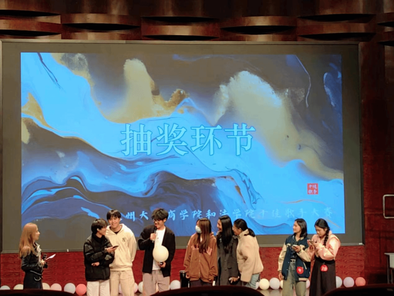 在第二轮比赛开始前,举办方穿插了游戏音乐炸弹及抽奖环节。感谢晓妍考研、良厨火锅、迪艾音乐主题轰趴、掌猫游艺室、杯中往事推理社等赞助商的亲情赞助。同学们踊跃参与,炸开的气球点燃了全场的气氛,带动了同学们的观赛热情,整个音乐厅笑声不断。