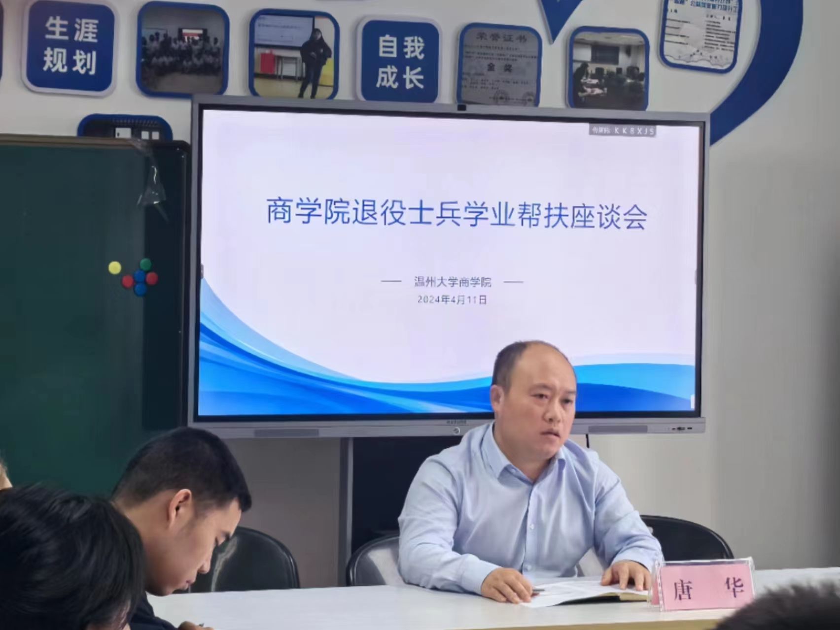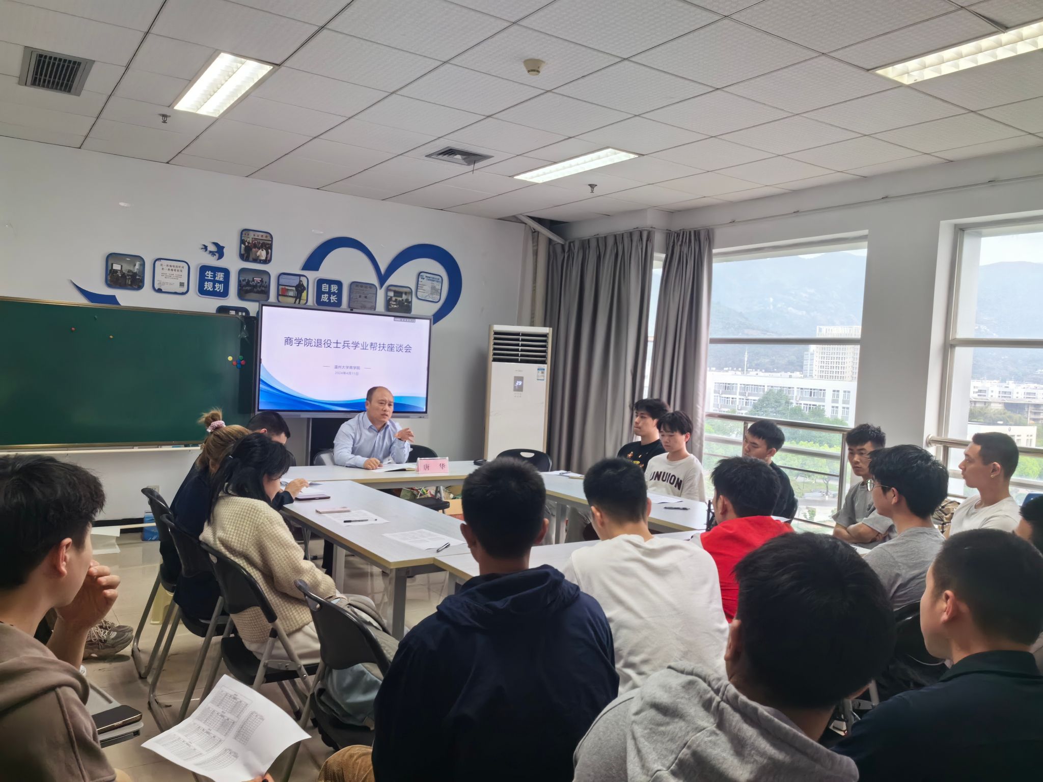 举行23级专升本退役大学生士兵学业帮扶座谈会。党委副书记唐华,学生科辅导员王景欣、张春洋以及27名退役大学生士兵参加会议。