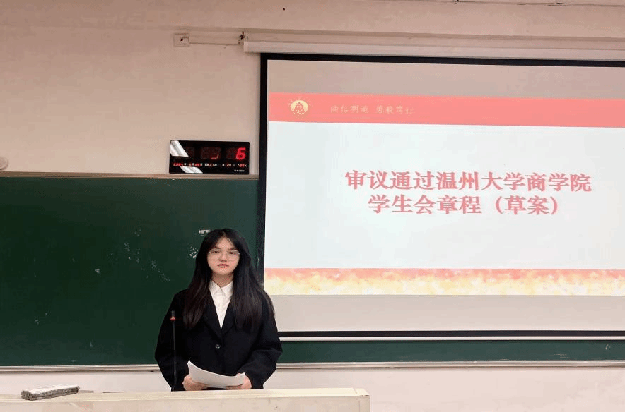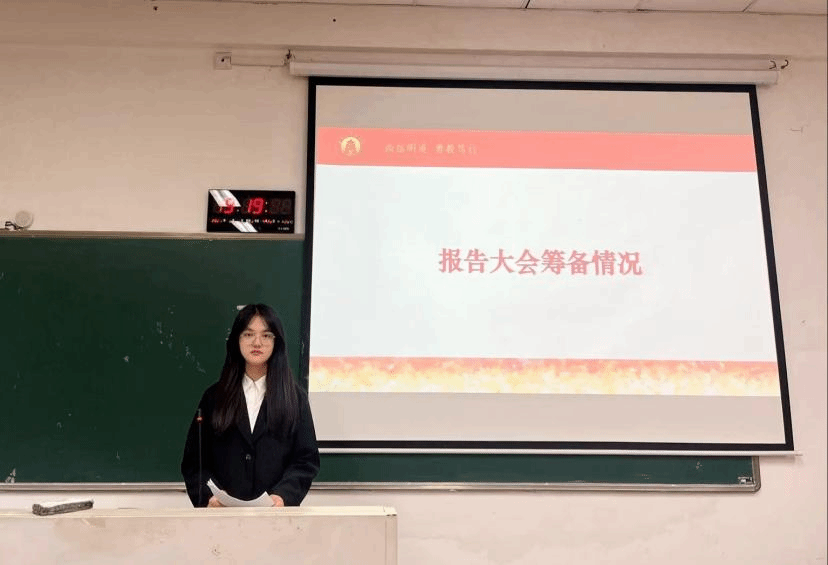 学生会执行主席王文钰在正式会议中做魔镜号