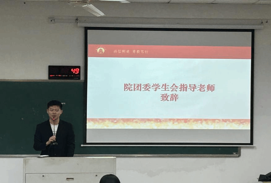 团委学生会指导老师张春洋在开幕式上进行了发言,望每位学生干部铭记初心,认真踏实,以开拓进取的精神状态和求真务实的工作作风引领商院青年,为魔镜号