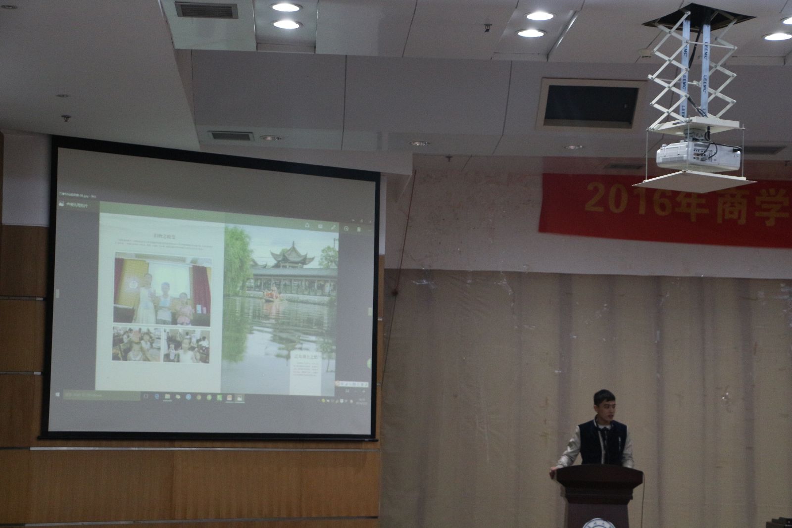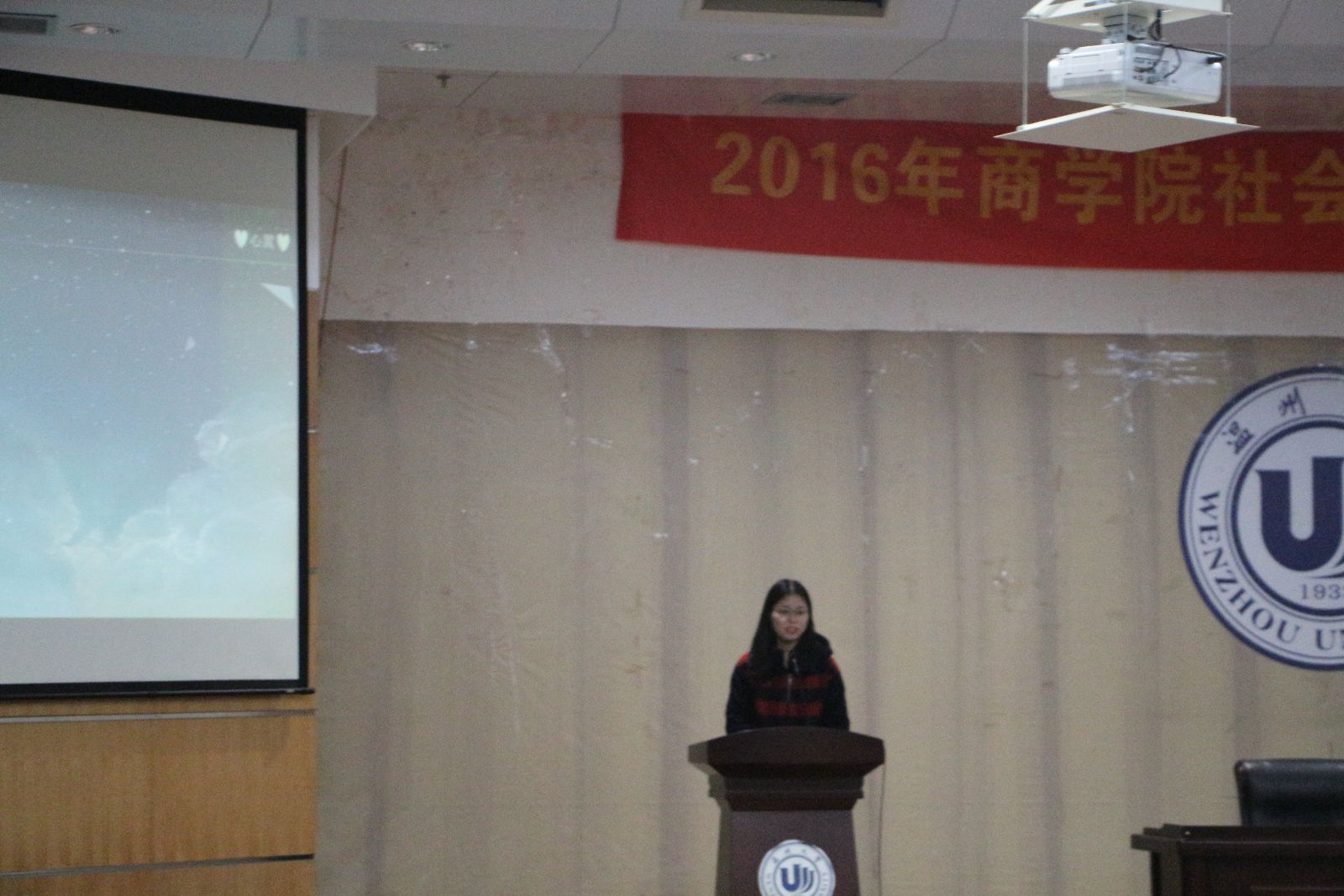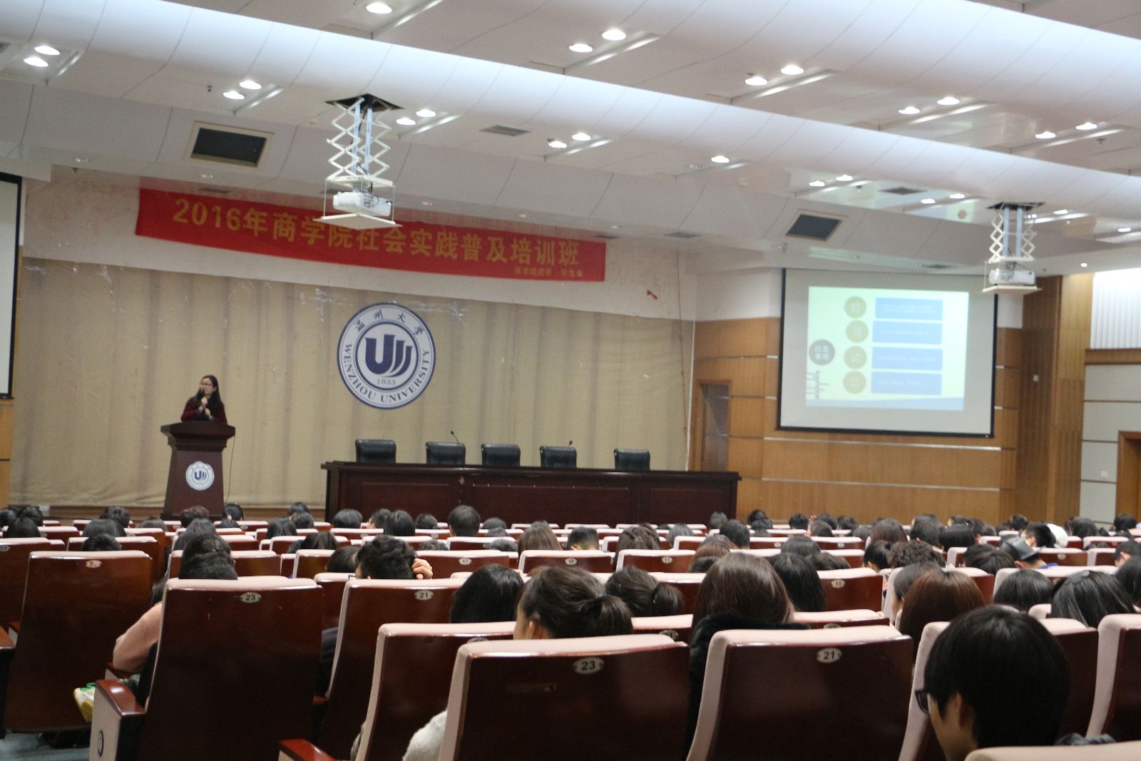 2015年度暑期社会实践优秀成果视频。通过精美丰富的视频展示,同学们更加深刻地了解了实践的过程,意义,以及实践中的艰辛与快乐。紧接着便是主持人对于暑期社会实践活动的详细的介绍,在介绍中,同学们了解到了暑期社会实践的一些流程及安排,也相信同学们对未来自己参加实践活动有了一定的概念。之后便是优秀实践队队长们的分享时间。首先是《我与动物有个约会》的实践队队长姜阳琦同学,她为我们详细介绍了策划书的撰写以及如何与实践基地对接的问题,她丰富的创建实践队的经验也一定让同学们收获满满。紧接着便是由心翼实践队优秀队长楼苗彦同学,副队长杨然同学为我们分享了她们的带队经验,并且介绍了她们和自闭症儿童的另一个世界。心翼实践队是人民网全国大学生社会实践公益50强和第五届大学生暑期社会实践十佳团队,她们辛勤的工作和负责的态度连连获得同学们的掌声。最后,魔镜号