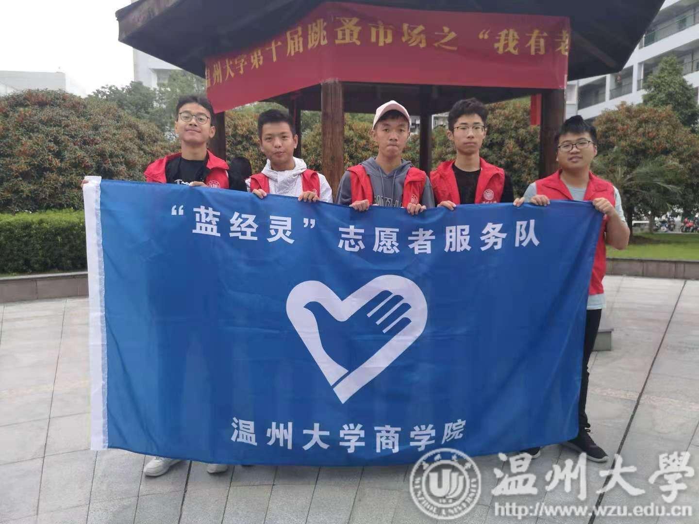 10月20日,温大商院蓝经灵志愿者在学区广场开展跳蚤市场志愿服务以帮助大学生在感受浓郁的创业气息的同时,投入到创业实践中去。