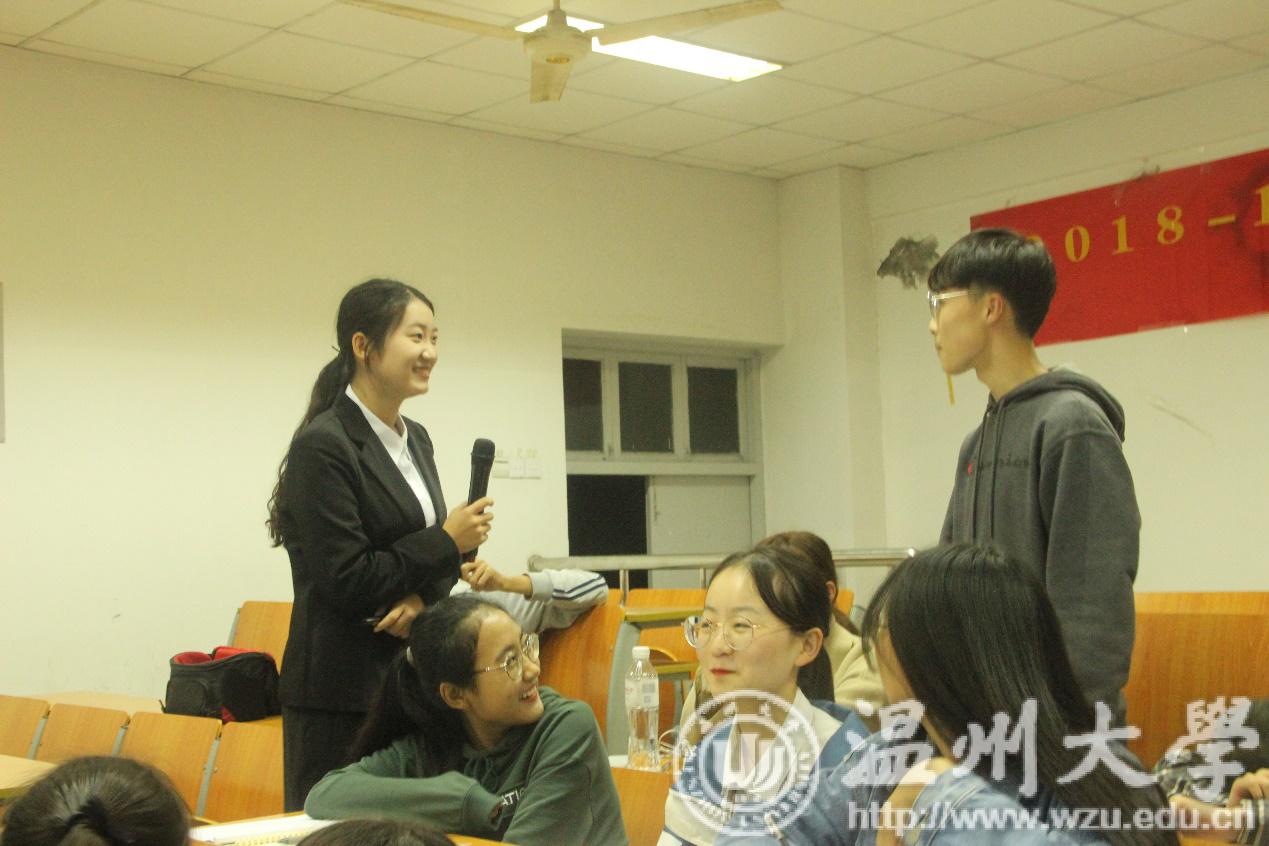 第一个给我们进行礼仪培训的唐坤妍同学告诉了我们礼仪的内容以及重要性。向我们说明学习礼仪有加强自我约束能力,提升团体及个人形象,传播与沟通信息,营造良好的交往氛围等好处。其后分别由杨佳宁同学、王家雯同学、林怀周学长、俞婷同学、陈晓东同学为我们进行了着装礼仪、交谈礼仪、公共场合礼仪、迎宾接待礼仪、体态姿势礼仪等一系列具体的培训,还通过各种面对面互动深化了大家对礼仪的认识,为大家上了一堂别开生面的礼仪课。听到讲解后,大家受益匪浅。