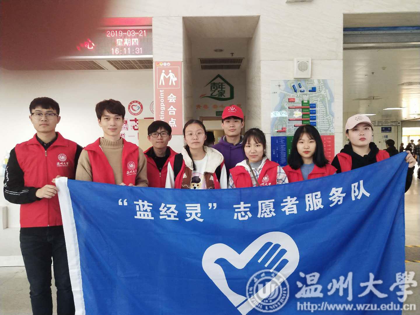 蓝经灵志愿者们于3月21日来到温医一医,协助患者就医。
