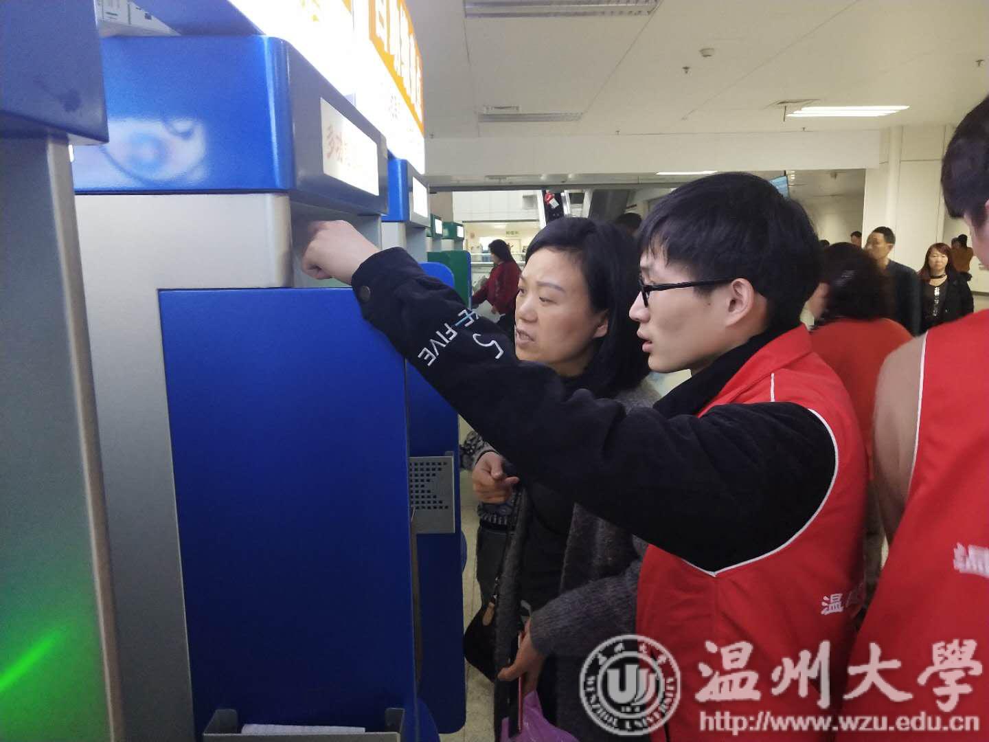 在志愿活动正式开始前,志愿者们首先接受了相关的志愿者培训——在医院签到处完成了志愿者答卷、接受负责人对医院的介绍并听取了对本次工作注意点的讲解,随后便穿上温医一医的志愿者红马甲,在志愿者负责人的指导和安排下被分成4组在医院1,2,3,4号楼的2层自助机边协助患者就医,进行日常的引导咨询工作。除此之外志愿者们还协助患者进行各种操作,为患者指路,并回答患者提出的一些简单问题。志愿者们不辞劳苦,在工作中学习,克服导医过程中的种种困难——对每一位前来询问的患者耐心解答,细心指导,照顾患者的情绪,尽量解决患者们的问题,为患者就医提供了良好温馨的环境。活动虽苦,但患者们在问题解决之后的一声声道谢和脸上的笑容却让志愿者们感到无比温暖。