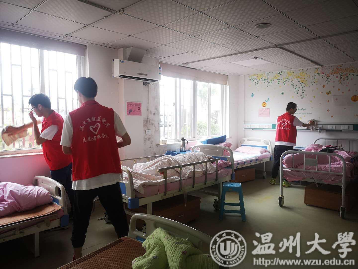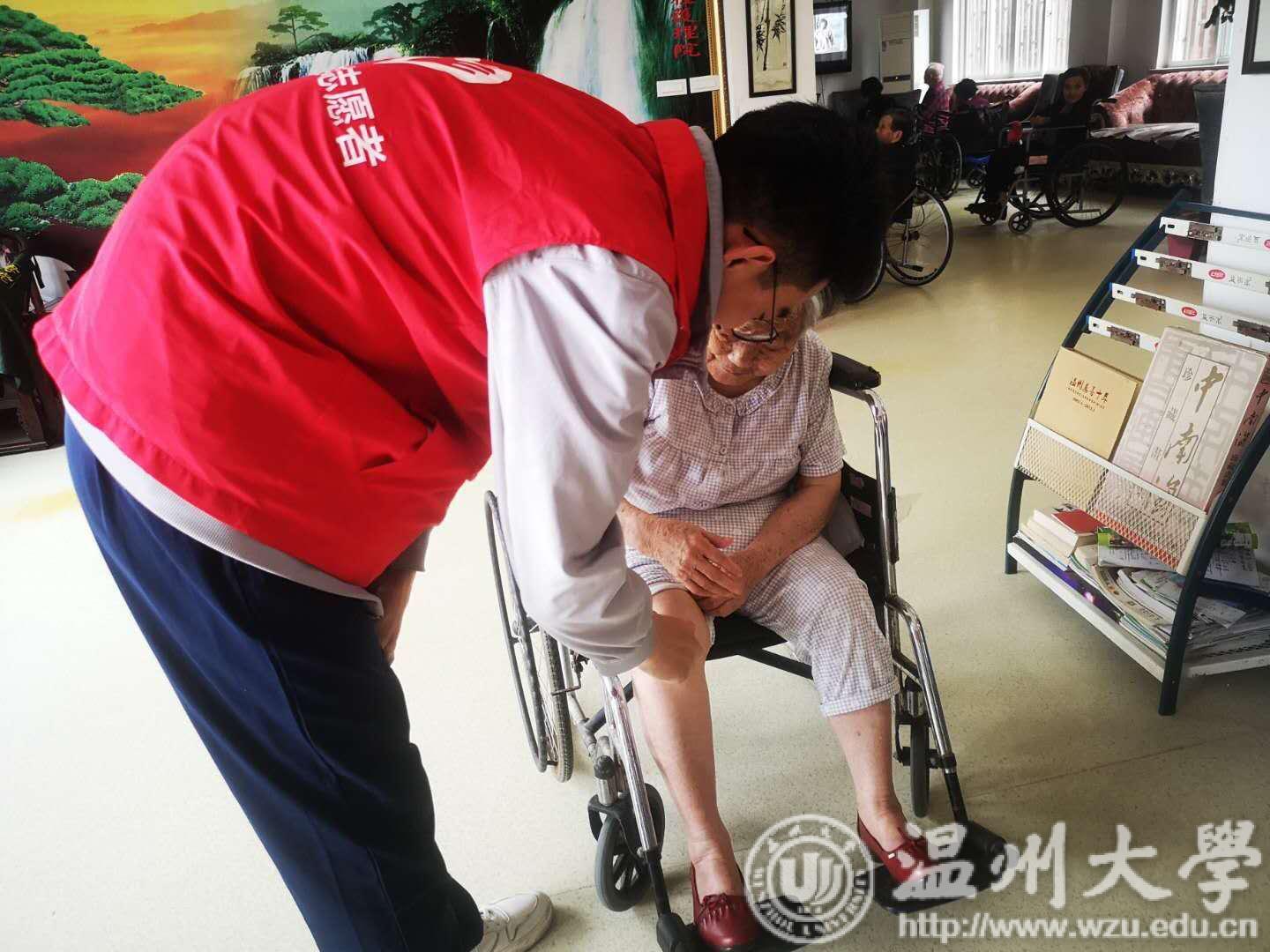 蓝经灵志愿者们在温州市瓯海区安孝老年护理院开展了“关爱老人、奉献爱心”的志愿者活动。