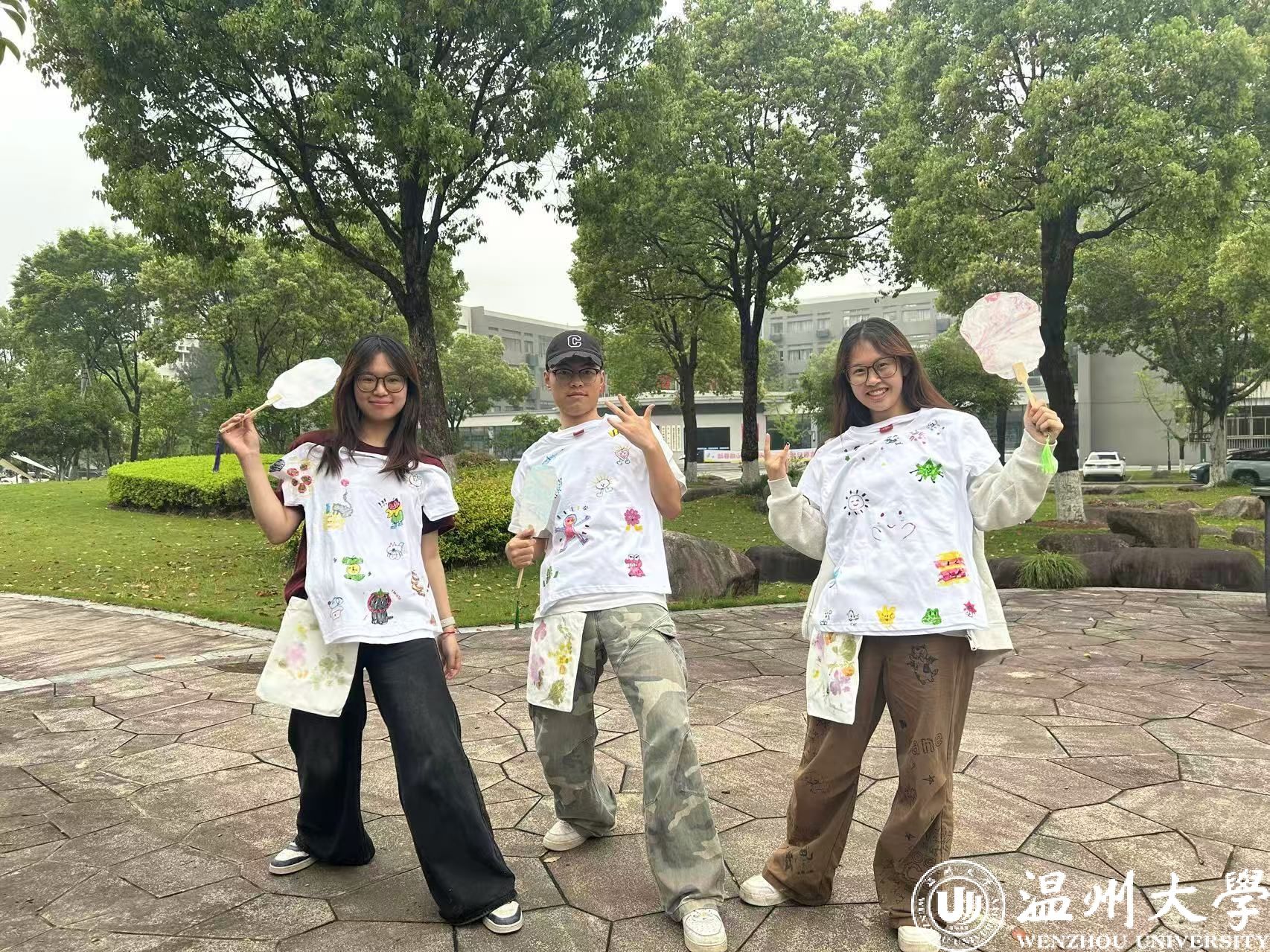 “艺术共鸣”区域同样热闹非凡。同学们手持颜料和画笔,在“共鸣涂鸦墙”上自由创作,用色彩和线条表达自己对情感或“共鸣”的理解;部分同学则在空白T恤上精心绘制图案、书写文字,完成后将这份独一无二的作品带走留念。通过艺术创作,同学们有效抒发了内心情感,加深了对自我和他人的认知。