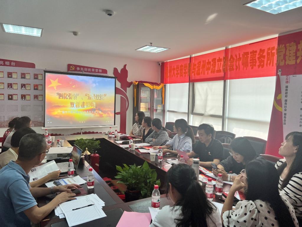 温州中源立德会计师事务所党支部书记夏显光介绍了事务所的发展历程,并且从坚持政治引领、规范组织生活、发挥模范先锋作用、坚守社会责任等几个方面展现了党支部的党建工作特色,进一步介绍了以党建促业务,走党建业务的协调发展道路。