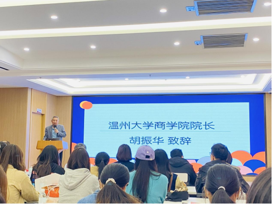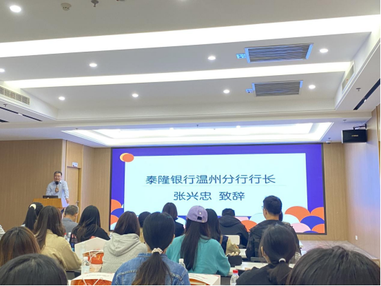 院长胡振华发表讲话。他指出,泰隆银行的普惠理念很符合当前浙江省建设高质量共同富裕示范区的要求,共同富裕强调的就是让农民和市民享受一样的幸福感,让小微企业和大中型企业一样享有平等权利,而泰隆银行以发放小微贷款的方式助力小微企业发展,这对于增加就业、增加税收有积极作用,展现了泰隆银行的社会担当。同时,他指出本此实践调研让研究生们更真切地了解银行的工作体系,也为绿色金融、普惠金融的论文写作积累素材。最后,胡院长勉励在座研究生需不断夯实自身的商科基础为未来投身于泰隆银行等系列银行打好基础。