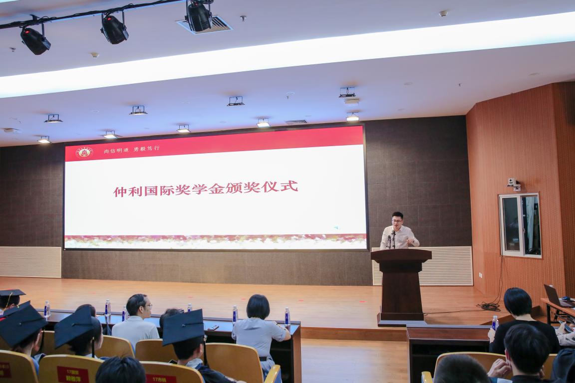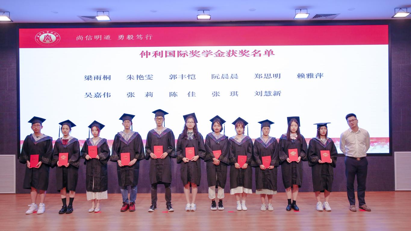 的本科毕业班学生,共设立两个类别的奖项,分别是本科学业奖、本科实践奖。本次仲利国际奖学金共有11位同学获得,其中学业奖10人,实践奖1人。颁奖仪式选择放在毕业典礼上进行,也是为了让毕业生深刻记得这一时刻,学会感恩,学会成长。
