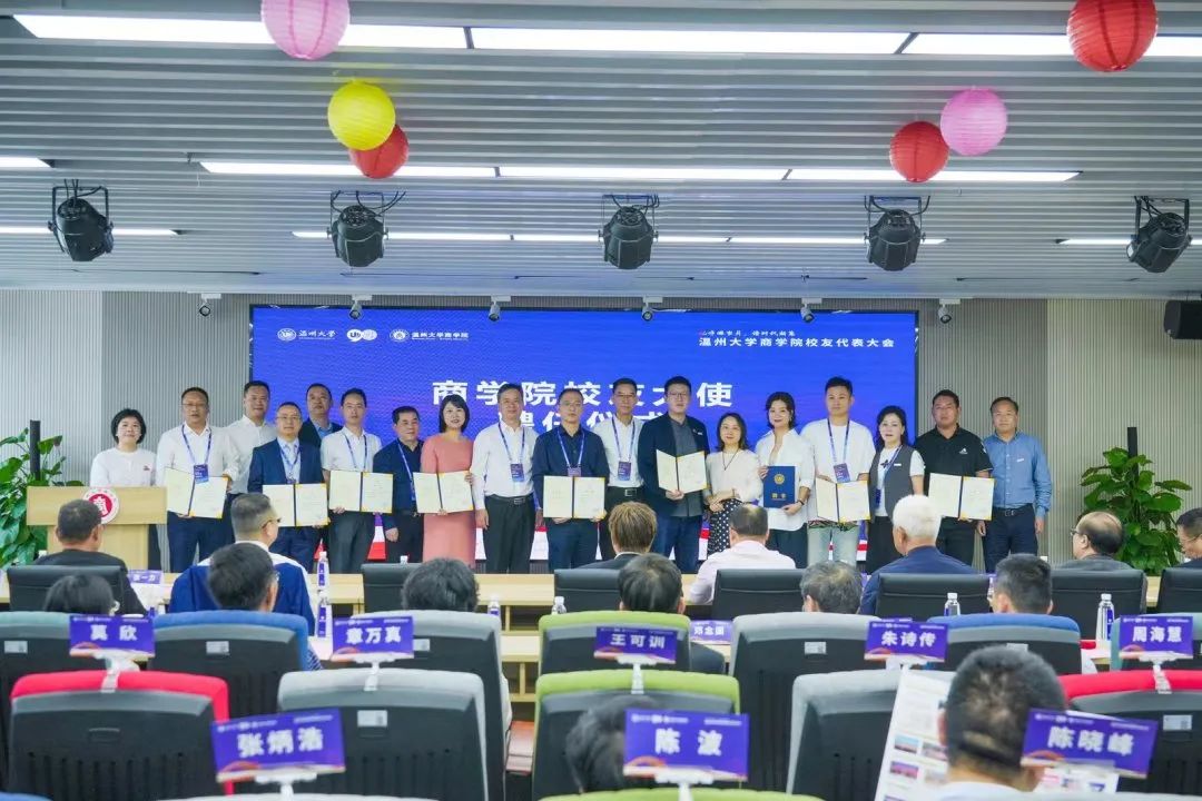 校友会常务副会长兼秘书长张素琴、副会长莫欣、夏捷胜、章万真、王可训、朱诗传、周海慧、杨颖俊、叶连敏为9位新当选的校友大使颁发聘任证书。