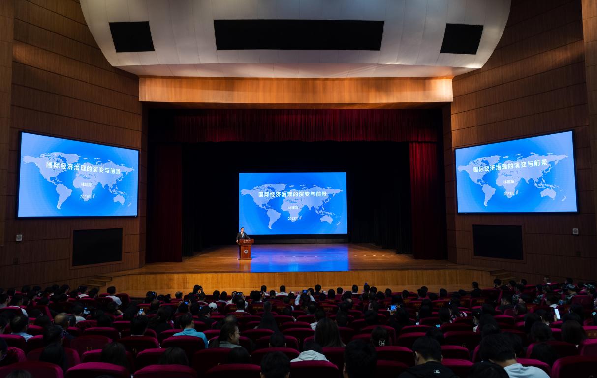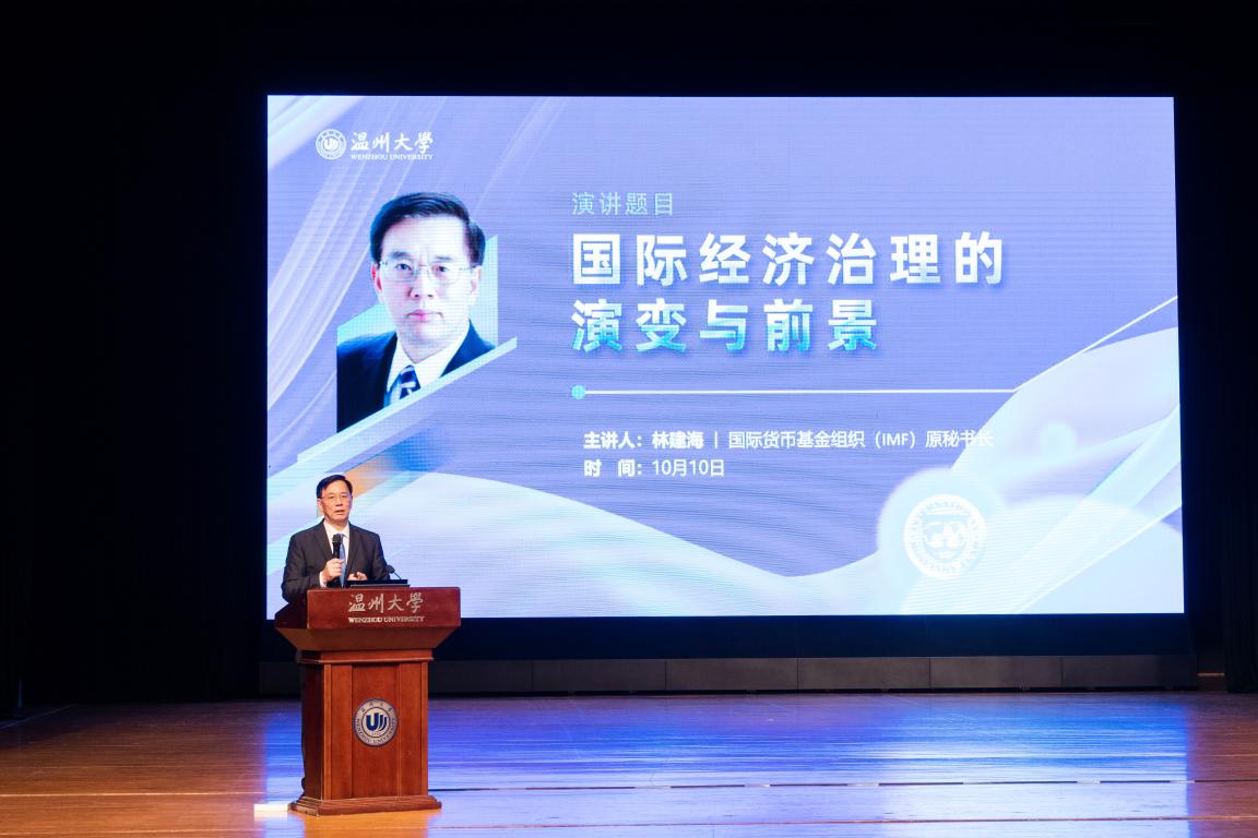 2023年10月10日下午15:30,原国际货币基金组织(IMF)秘书长、温大客座教授林建海为温大师生带来一场以“国际经济治理的演变与前景”为主题的讲座,目的是让学生更加清晰地理解当今世界经济环境,有利于培养学生的商业思维。此次讲座受到了温州经济金融界的广泛关注,吸引了许多来自兄弟院校的老师、金融行业的企业家前来学习交流并特邀校友代表现场听讲。