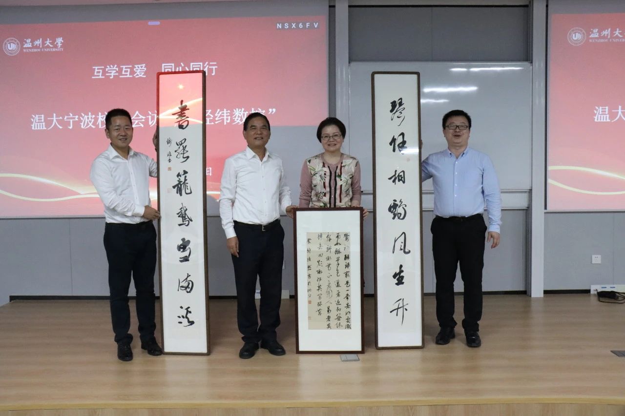 校友会名誉会长钱政受理事会的委托,以“琴余相鹤风生竹,书罢笼鹅雪满溪”的书法作品相赠,这是对她文静好学品格的点赞,预示了雪后春到、春来草青的愿景,表达了对林立雪校友美好的祝福。在活动中,他代表校友,畅谈了访学的感受,对宁波校友会学习型、能量型组织建设的定位,表示高度赞赏。充分肯定像林立雪一样的许多优秀校友,从大家身上看到的亮点是四个字:好学、敢闯。“求学问是,敢为人先”校训,从一定程度上说,是温州人“四千”精神的基础。他还从传统文化养性和养生的角度,与大家分享了要守好人生的五扇门:“脑门、心门、气门、生门、命门”,特别是脑门、心门,既要不断充电,充实脑门;还要有爱心、讲良心、发善心。并对经纬数控的“养气、养德、养智”格言表示欣赏。他认为,成功的人生都有共同的特质:一有“气”:志气、文气、大气;二有“德”:“忠诚度、执行力、敬畏感;三有“智”:智商、情商、胆商。