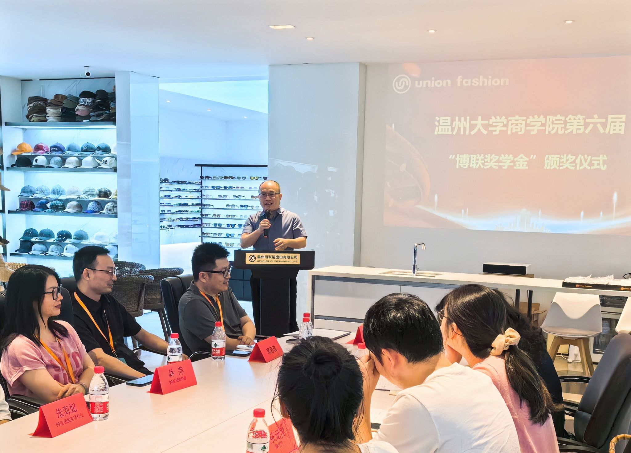 第六届“博联奖学金”颁奖仪式在温州市博联进出口有限公司顺利举行,获奖学生们通过实地参观交流,近距离感受了校友企业文化。学院党委书记唐华、党委副书记曾蓓蕾、学工办主任周洁文、学工办全体辅导员及获奖学生代表参加了本次活动。