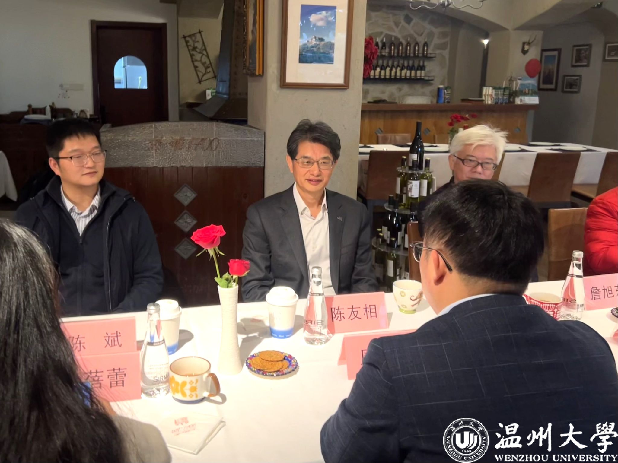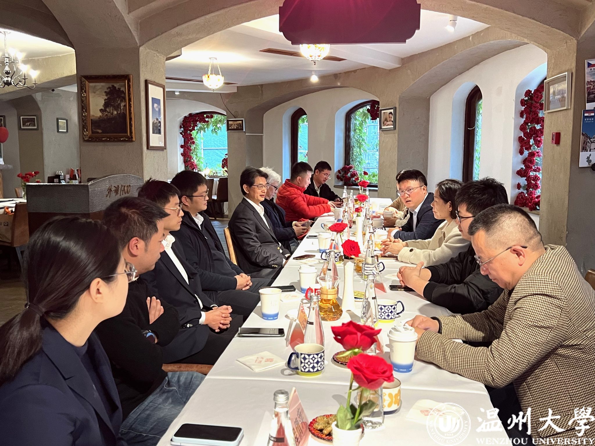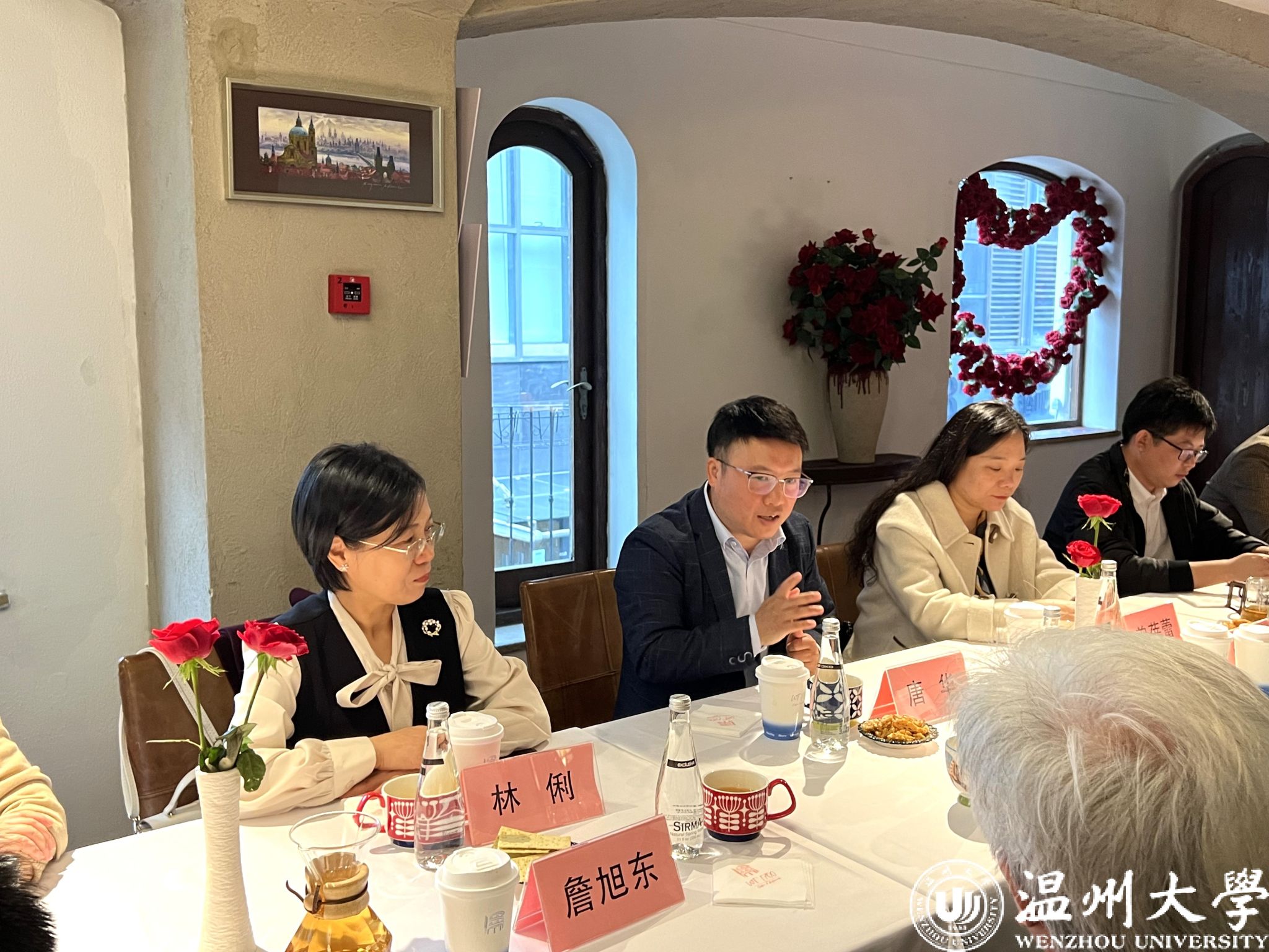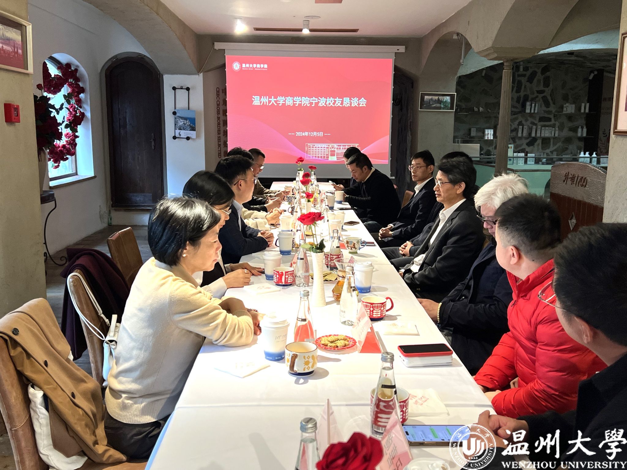 党委书记唐华、党委副书记曾蓓蕾,“国一流”专业国贸专业负责人林俐等一行人出席活动,并与陈友相(85外贸经济,中宁化集团有限公司总裁、中国-中东欧国家联合商会副主席,现任宁波校友会会长)、陈斌(07经济学,东莞证券宁波分公司总经理)、董袁(08经济学,工商银行宁波鄞中支行行长)、陈金星(07级财务管理,中宁化集团有限公司集团审计合规部总经理)、骆炜炜(08国际贸易,杭州润培化妆品责任有限公司销售总监)、詹旭东(86外贸经济)等10余位校友进行深入交流。