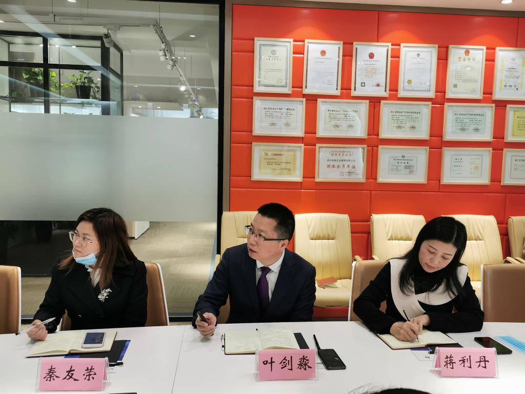 该公司坐落于温州蓝江软件园(蓝江软件集聚基地),地理位置优越,是温州IT信息产业高科技生产发展中心。浙江科能企业管理有限公司成立于1998年,是经工信部、国家认监委、省经信厅、环保厅、质监局、各市安监局、市科技局等批准,具备多项资质和能力的大型咨询机构。专家组一行人随后,在蓝江软件园B幢会议室召开复工复产经济调研座谈会。