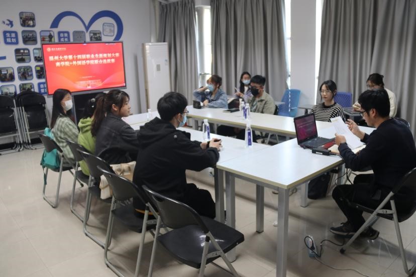 、外国语学院联合海选+初赛”于商务中心三楼会议室顺利举行。来自两个学院的共14位选手参加了此次比赛。
