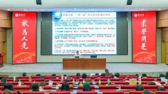 最后,陈甬军教授总结了习近平总书记关于共建“一带一路”战略提出的创新特点与理论基点。陈教授生动地讲解了习近平总书记共建“一带一路”思想中的天下情怀,习近平总书记“正确义利观”是共建“一带一路”理论与坚持“胸怀天下”立场观点的有机联接点。同时以理论指导和理论逻辑为依据,陈教授深入浅出地介绍了共建“一带一路”高质量发展的理论基础。
