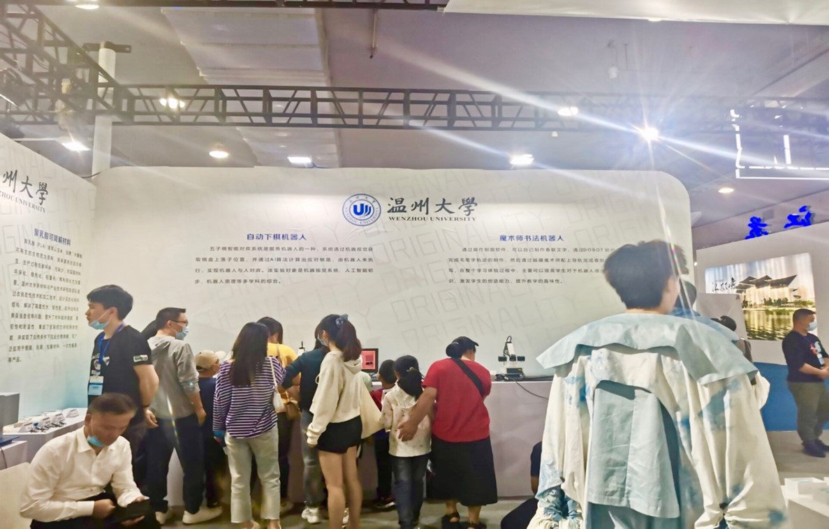 数字化车间软件系统、新型环保高分子笔头、功能PVB膜材料、聚乳酸可降解材料、云衣尚秀——虚拟时尚秀、自动下棋机器人、魔术师书法机器人、米可智能速热饮水机、Babynice儿童电动指甲剪、创新成果(温大)位于院校创意展区,由魔镜号