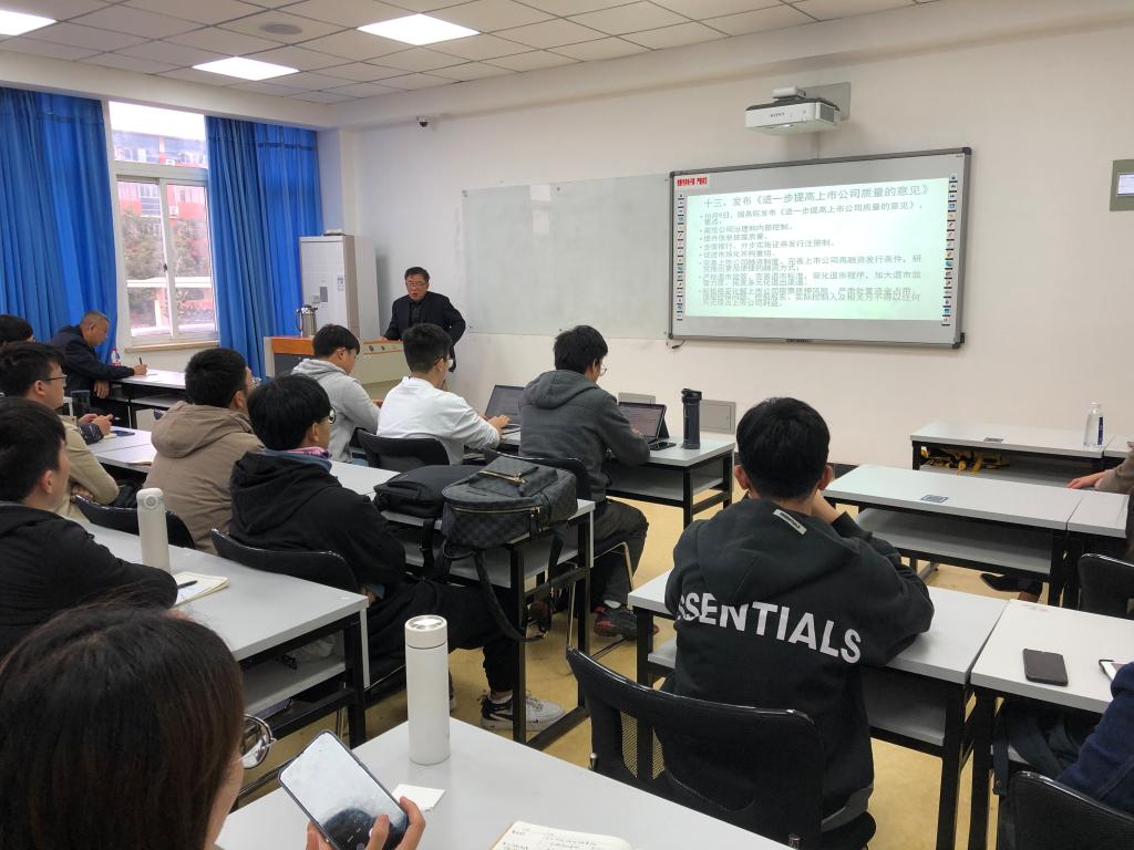 整场讲座持续一个半小时,谢平教授从新三板改革、债券发行全面注册制、创业板改革等方面讲述了目前资本市场的改革情况以及市场现状。谢教授的讲座观点新颖、见解深刻、逻辑严谨。讲座最后设有提问互动环节,大家积极踊跃发言,对自己心中的困惑向谢教授提出疑问,谢教授的回答语言精辟但却一语中的。