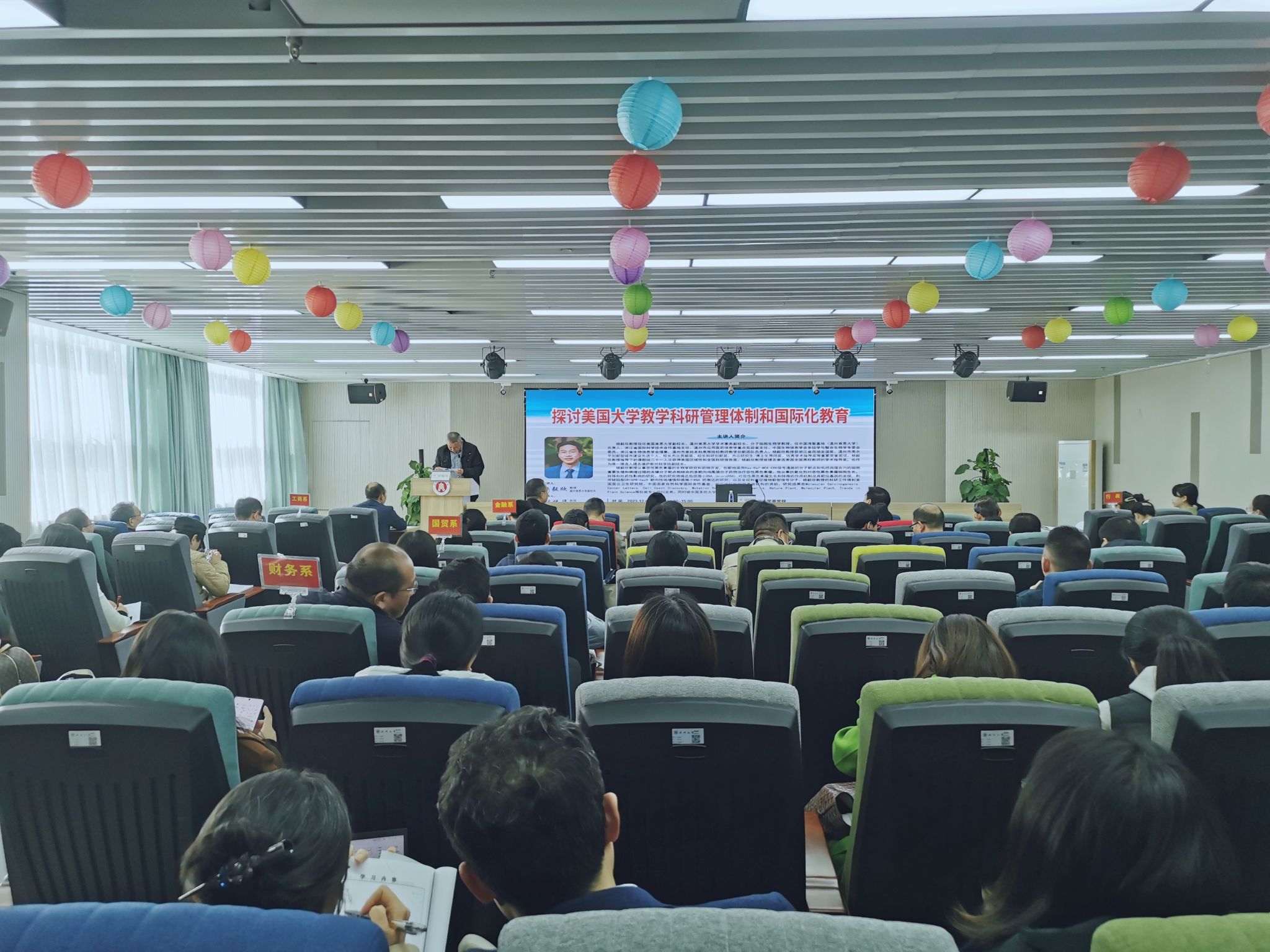 特邀温州肯恩大学副校长杨毅欣教授探讨美国大学教学科研管理体制和国际化教育。会议由学院院长胡振华主持,学院全体教职工、部分学生参加。