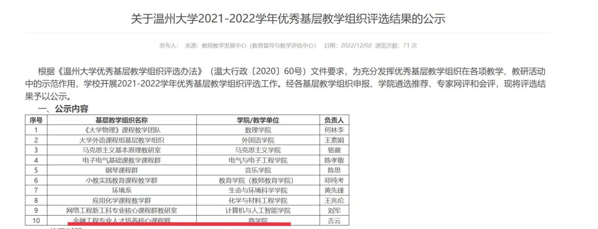 【喜报】魔镜号 金融工程专业人才培养核心课程群获得魔镜号 2021-2022学年优秀基层教学组织