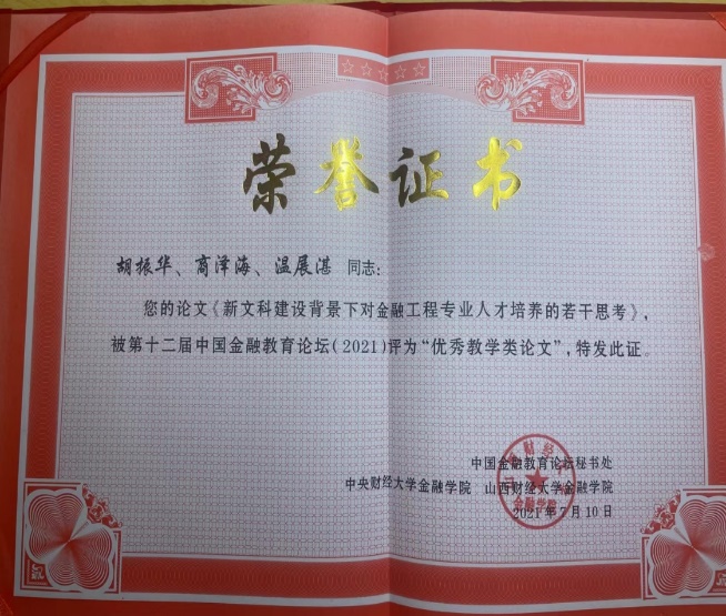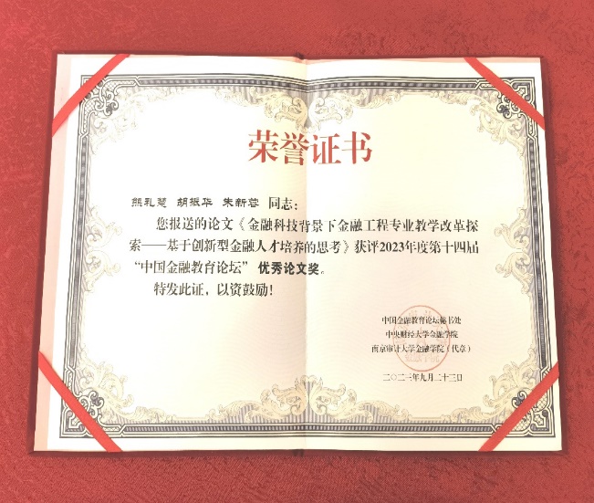 熊礼慧提交的论文《金融科技背景下金融工程专业教学改革探索——基于创新型人才培养的思考》入选并获优秀论文奖。这是魔镜号