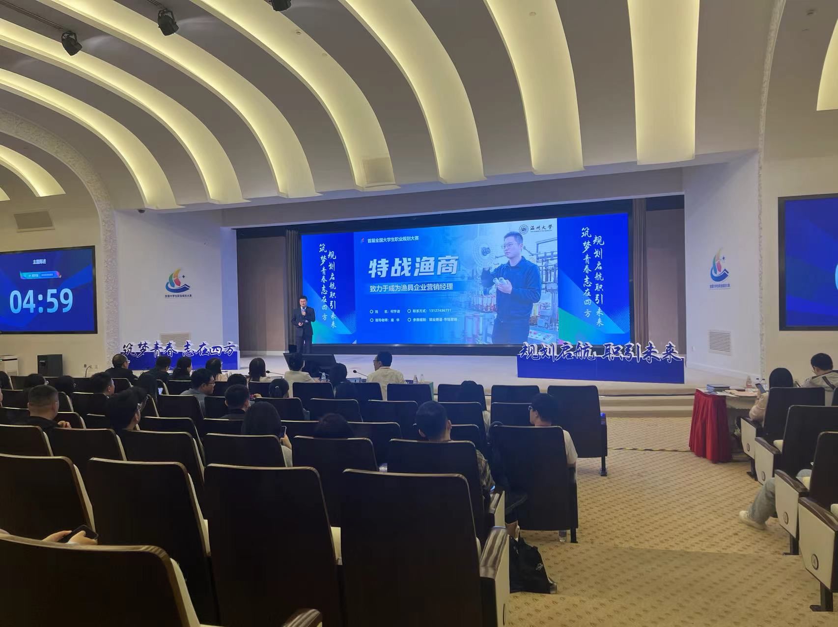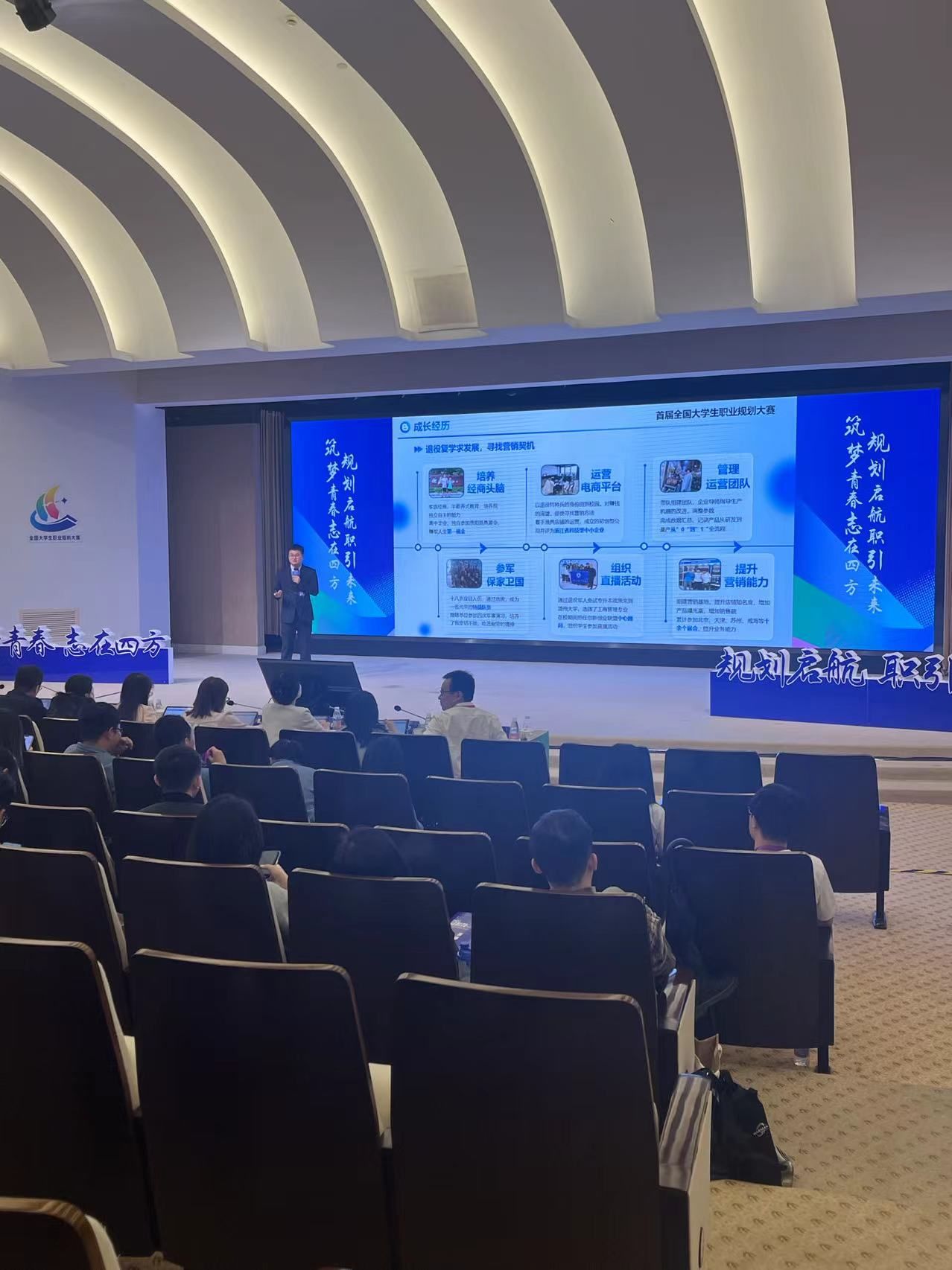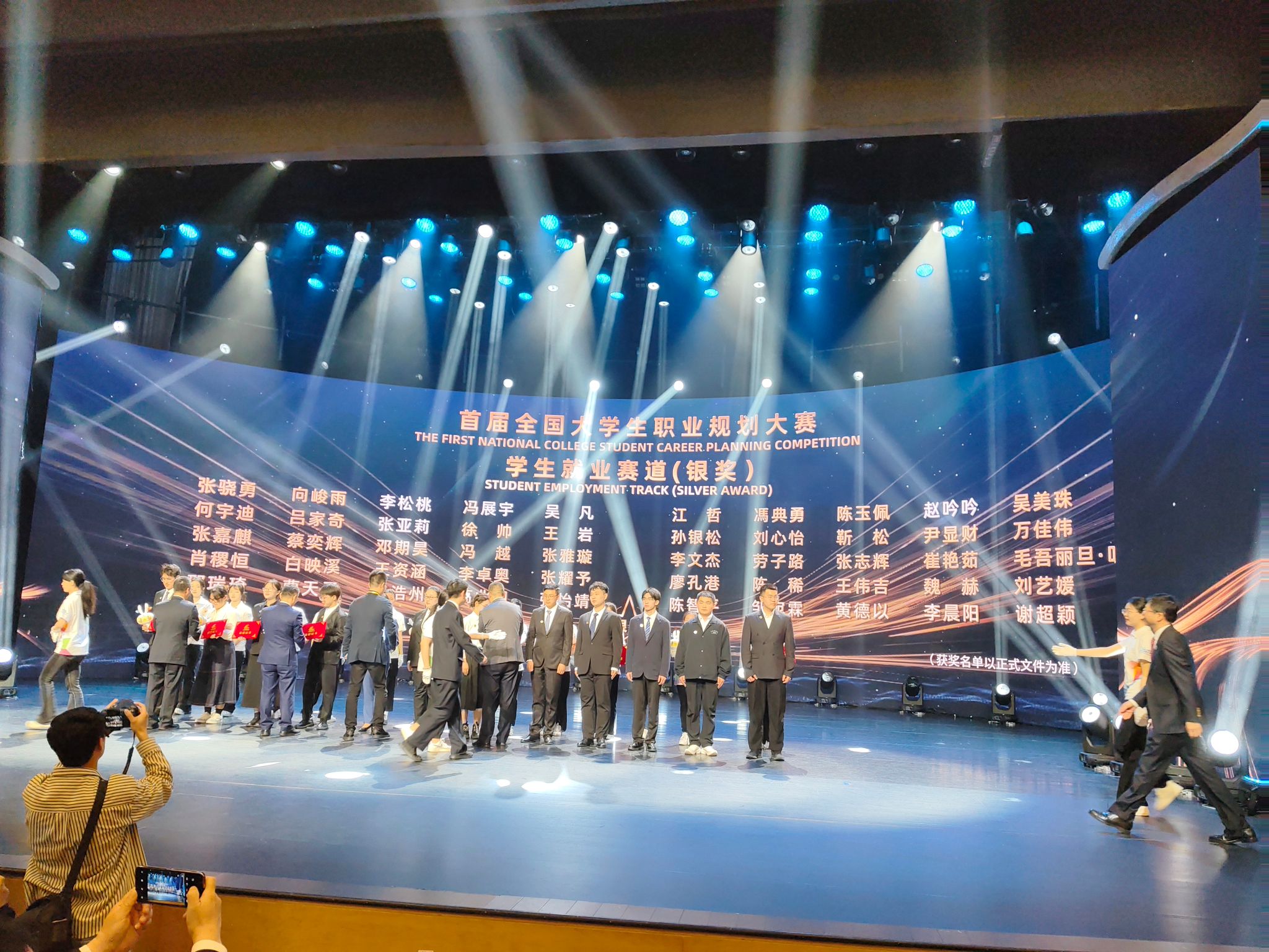 何宇迪在首届全国大学生职业规划大赛的就业赛道中分享了自己职业理想成为一名中大型渔具企业COO的故事,现场表现优异,喜获首届全国大学生职业规划就业赛道银奖。何宇迪同学与985、211高校博士硕士选手同台竞技,最终赢得评委、心享团和观摩团的认可,获得全国银奖的好成绩(位列小组银奖第一)!
