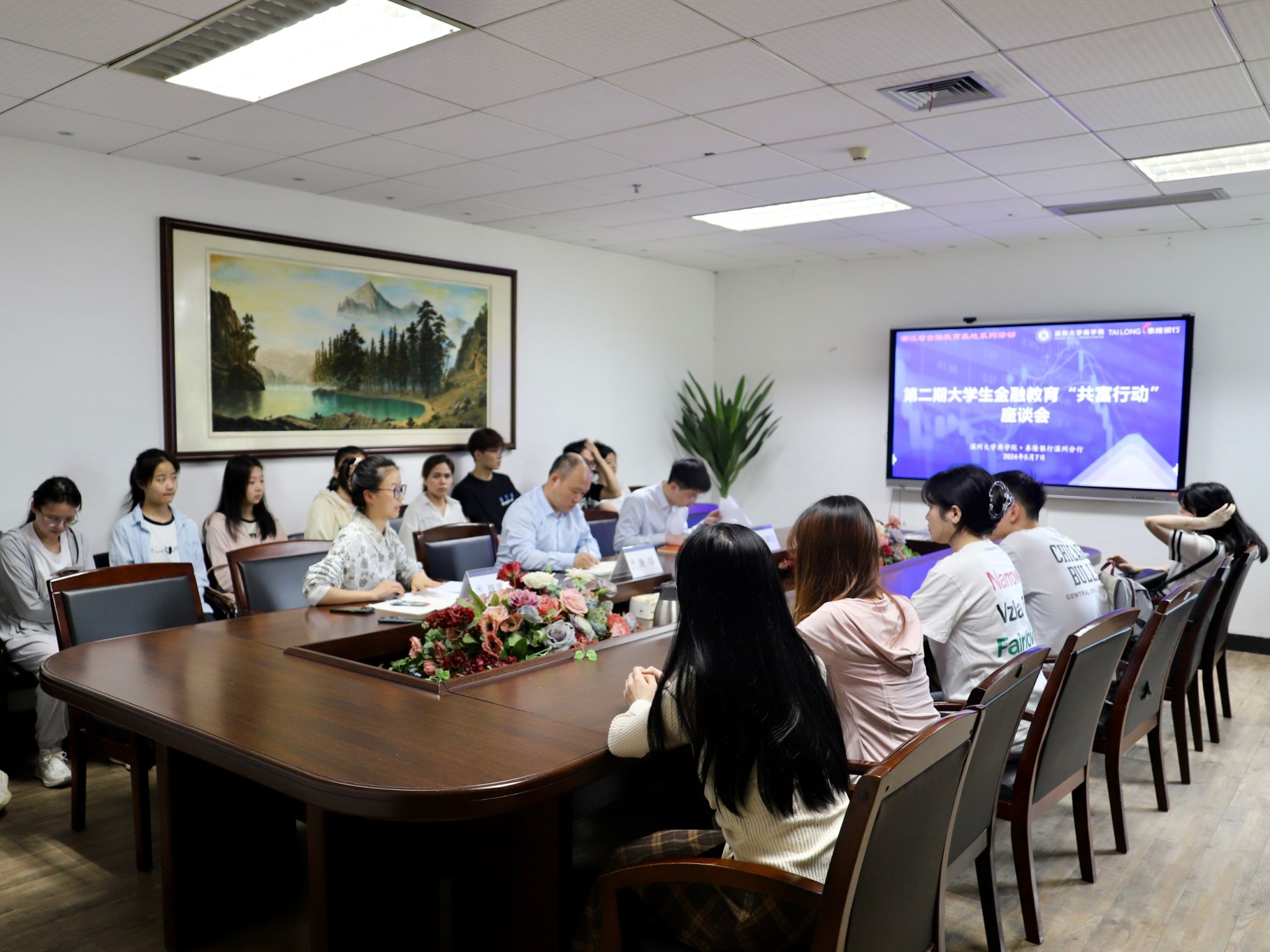 党委副书记唐华、党建指导老师聂海燕老师、泰隆银行人事部吴捷达老师,以及参与本期活动的15名学生出席了座谈会。