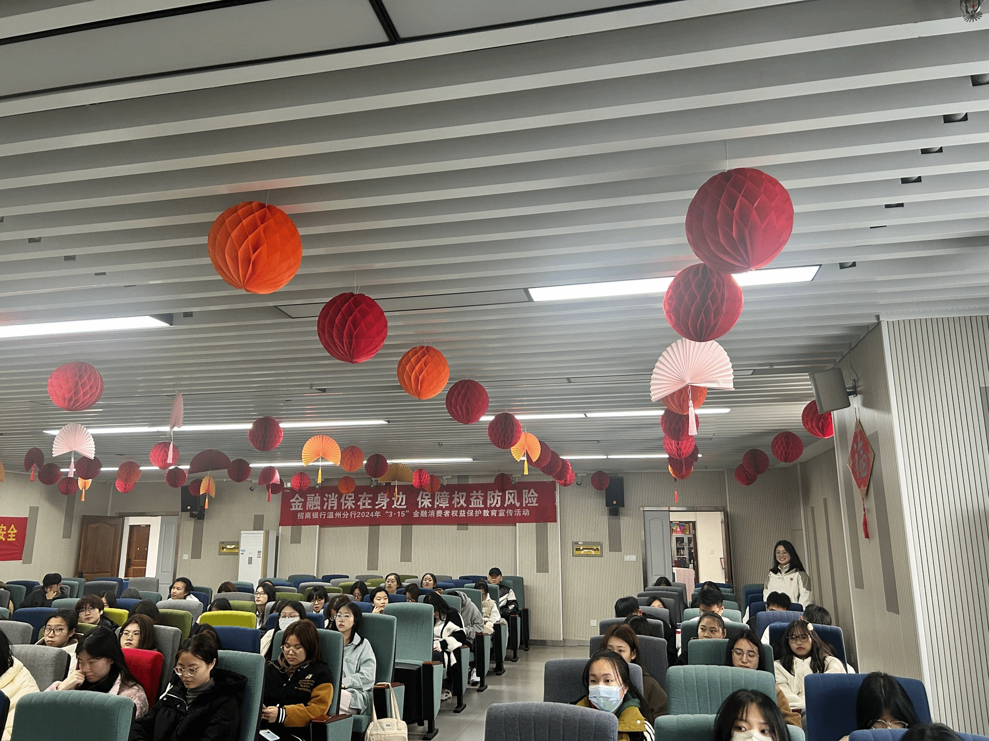 学生更加深入了解金融知识,分行同时还特别为120余位金融工程系大学生量身定制了一堂金融知识讲座,讲座以数字人民币为主题切入数字钱包、个人身份识别、账户交易金额限制等金融科技知识,为学生深入浅出地介绍了数字人民币的应用、前景以及招行的数币产品。专业的内容介绍让学生们学到了课本以外的知识,课程最后还由温大英语老师王博士对学习内容进行了总结性的介绍。