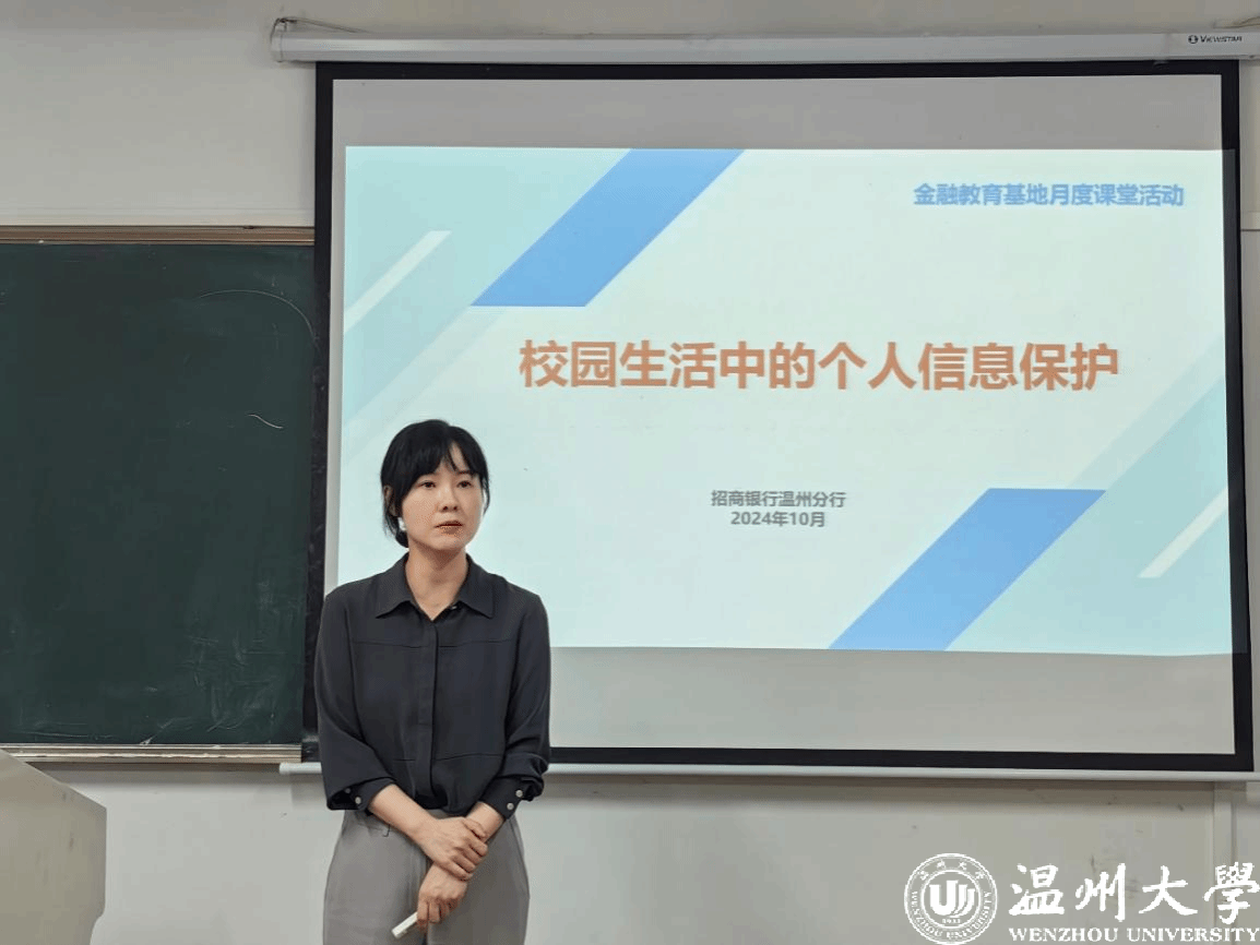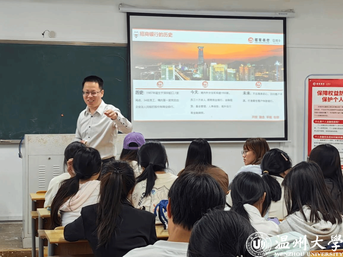 金融知识宣教协会邀请了招商银行温州分行的讲师麻诗瑾、娄志标为同学们带来专题讲座“校园生活中的个人信息保护”和“信用卡应知小知识”。