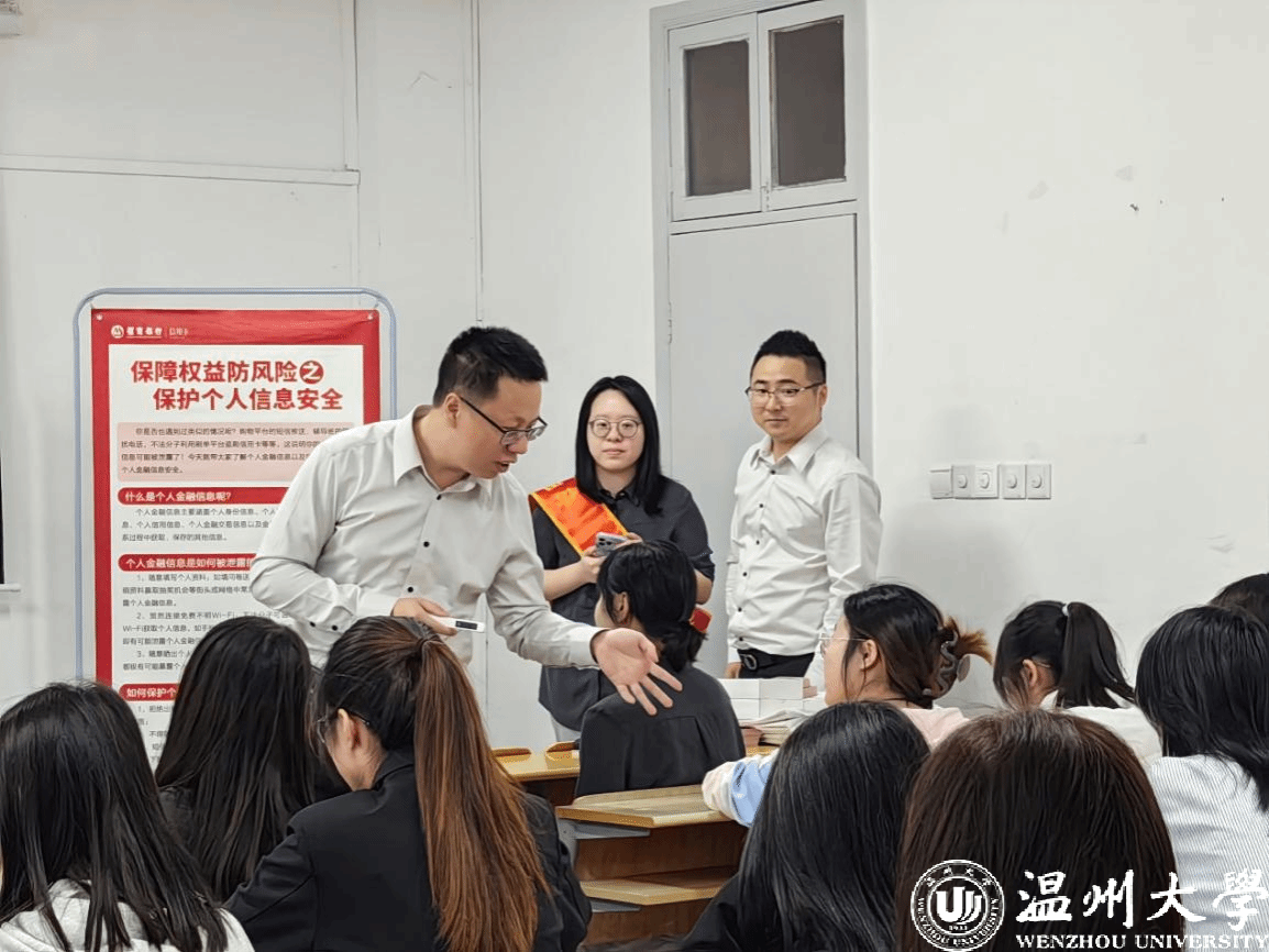 紧接着,娄志标从“信用卡概述”“个人信用”和“信用卡用卡安全小知识”三个方面向同学们讲解信用卡的正确使用。他提到,在上世纪五十年代的美国,信用卡是一种能够证明身份和支付能力的卡片。但正因其这一特殊的属性,信用卡在满足当代人支付和消费需求的同时也会引发一系列问题,如个人信用问题。个人信用主要通过个人信用报告展示,而个人信用报告主要包含个人基本信息、信息概要、信贷交易信息明细以及查询记录四个部分。若出现逾期还款、频繁贷款、众多不良社会行为则会产生不良信用记录,最终会对就业、出行、消费等产生系列负面影响。因此,维护好个人信用就显得十分重要,其主要途径是要注意用卡安全。办卡安全、支付安全、资金安全、征信安全是维护好个人信息、安全用卡的重要内容。讲座最后,招商银行温州分行工作人员通过有奖竞答的方式巩固了讲座的重要知识点。